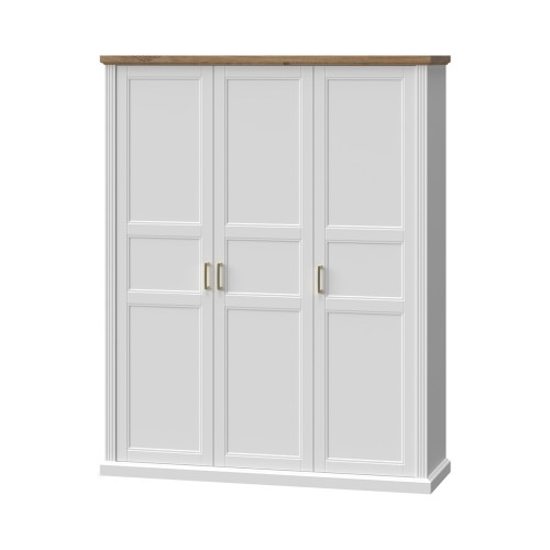 3-delna garderobna omara KENTAKI je primerna tako za odraslo spalnico kot za mladinsko sobo, saj ima nevtralen dizajn. Omara je razdeljena na dva dela. Na levi strani ima obešalno palico in vratca, na desni strani pa police in vratca. Garderobna omara vsebuje tudi ogledalo zaradi katerega boste vedno urejeni.