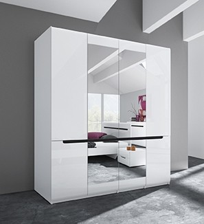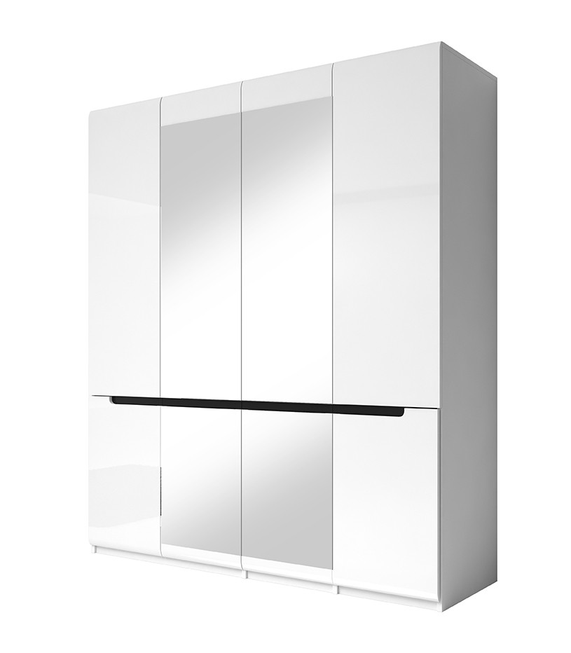 Garderobna omara HEKTOR je na voljo v kombinaciji bele barve in bele barve visokega sijaja, ki se odlično poda v vsako spalnico. 4-delna omara nudi veliko shranjevalne površine kamor lahko pospravite vaša oblačila, spodnje perilo in ostale stvari, ki vam delajo nered v spalnici.
