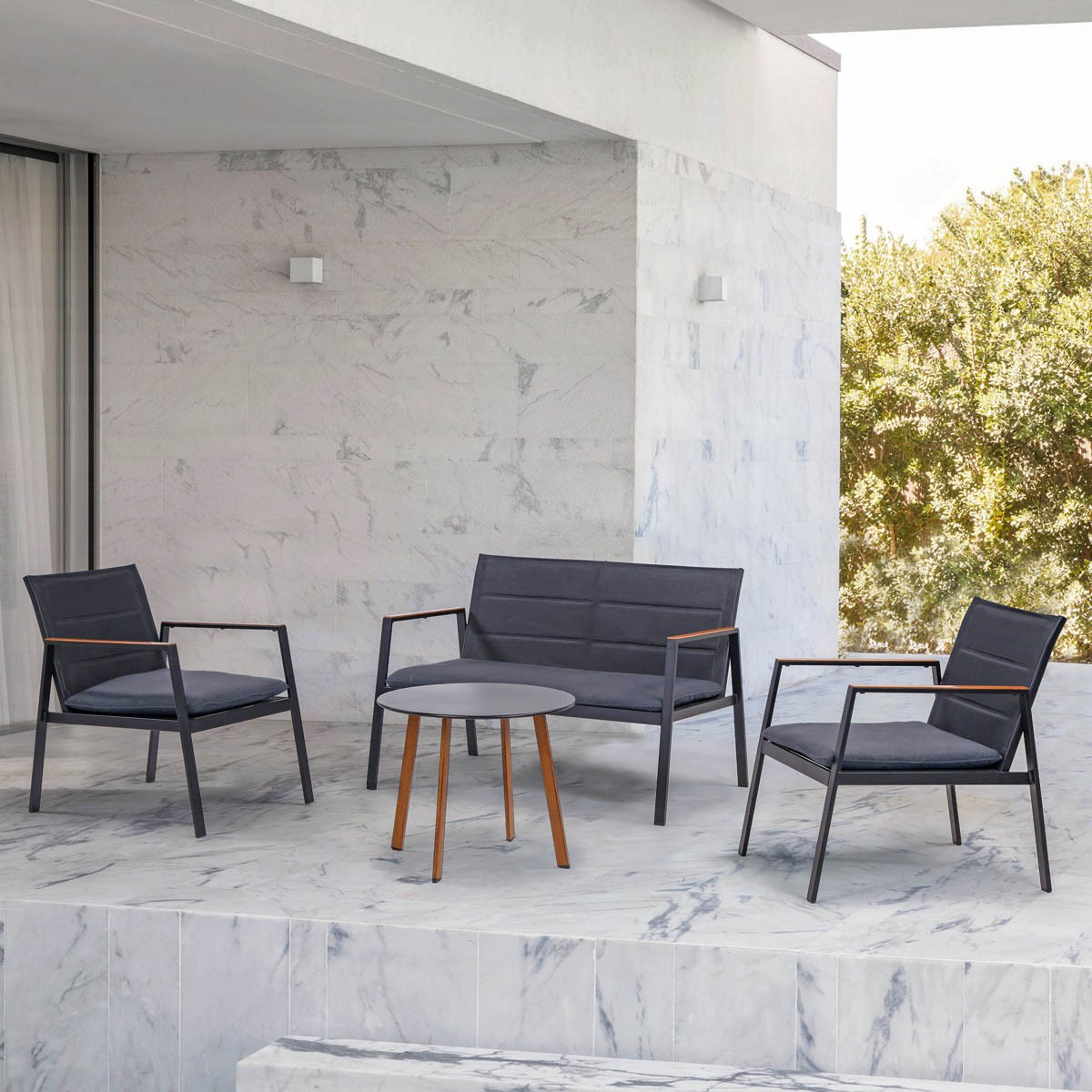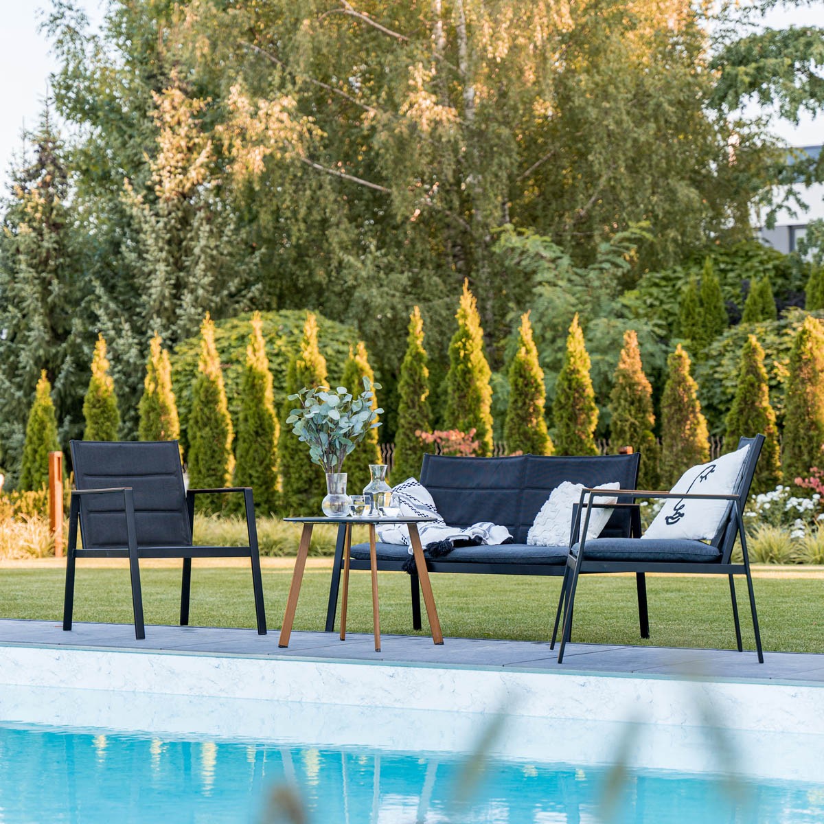 Privoščite si kvaliteten in moderen 4-delni vrtni set ABER, ki bo vašo teraso ali vrt poživel. Vrtni set bo vaš prostor popestril in omogočil druženje z vašimi najbližjimi v prijetno toplih večerih. Za udobje skrbijo blazine, za varnost skrbi kovinsko ogrodje, za atrakcijo pa dekorativne poslikave na rokonaslonih.
