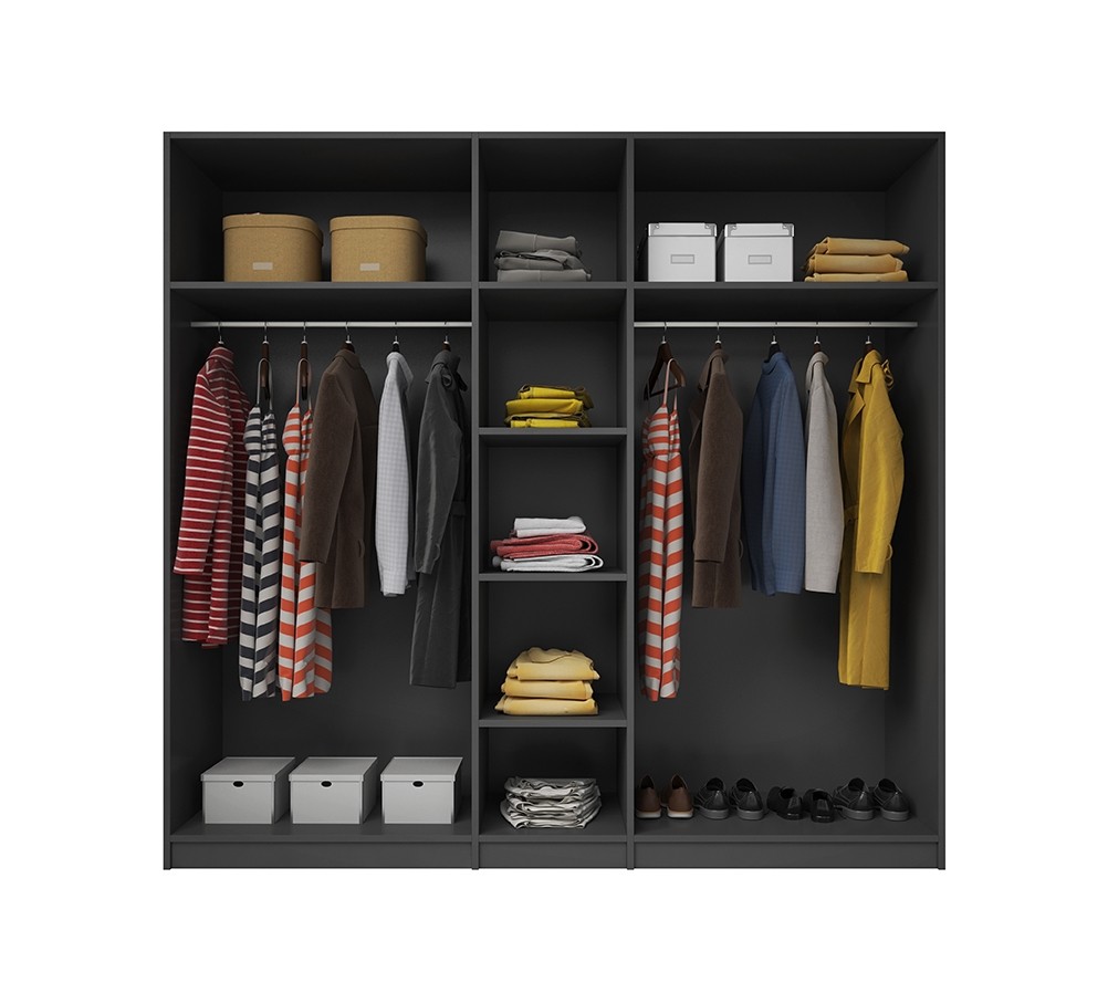 5-delna garderobna omara HEKTOR je zelo prostorna omara z veliko shranjevalnega prostora kamor lahko pospravite vaša oblačila, spodnje perilo in ostale stvari, ki jih želite imeti urejene v spalnici. Omara HEKTOR je na voljo v kombinaciji sive in sive barve visokega sijaja.