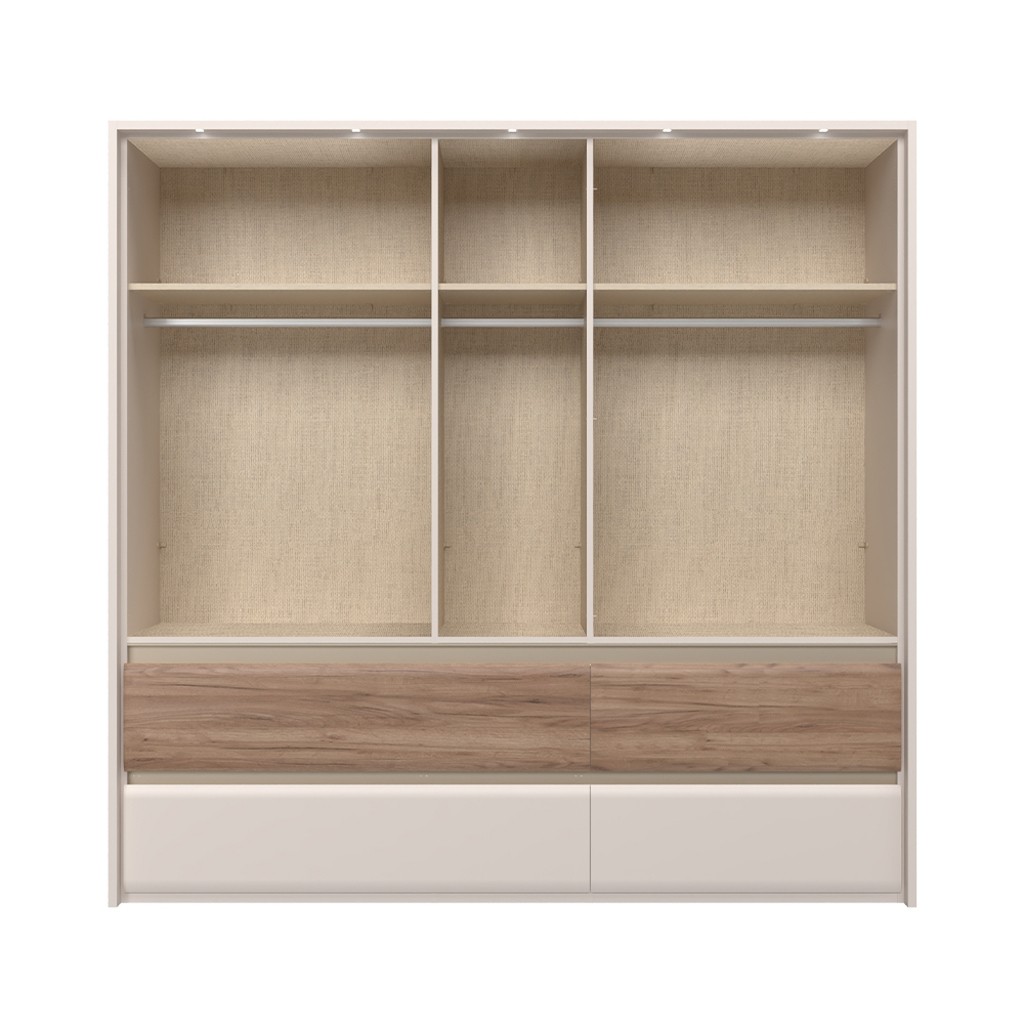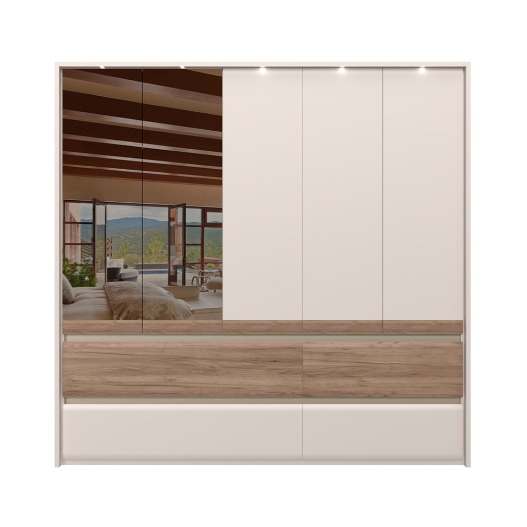 Omogočite si čisto in organizirano spalnico z nakupom 5-delne garderobne omare INVICTUS P54-2OG/IC. Garderobna omara je narejena iz kvalitetnih materialov in vsebuje ogledalo, tri police, štiri predale in tri obešalne palice, ki omogočajo, da bodo vaša boljša oblačila urejena. Omara vsebuje LED osvetlitev in dekorativni okvir.