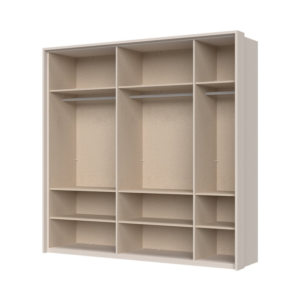 5-delna garderobna omara Kalla Opera P5B-5AL je odlična izbira za vse, ki si želijo prostorne in elegantne rešitve za shranjevanje oblačil. S svojimi steklenimi frontami in aluminijastim okvirjem prinaša sodoben in prefinjen videz v vaš dom. Njena notranjost v videzu tekstila dodaja pridih luksuza, medtem ko mehko zapiranje zagotavlja tiho in udobno uporabo.