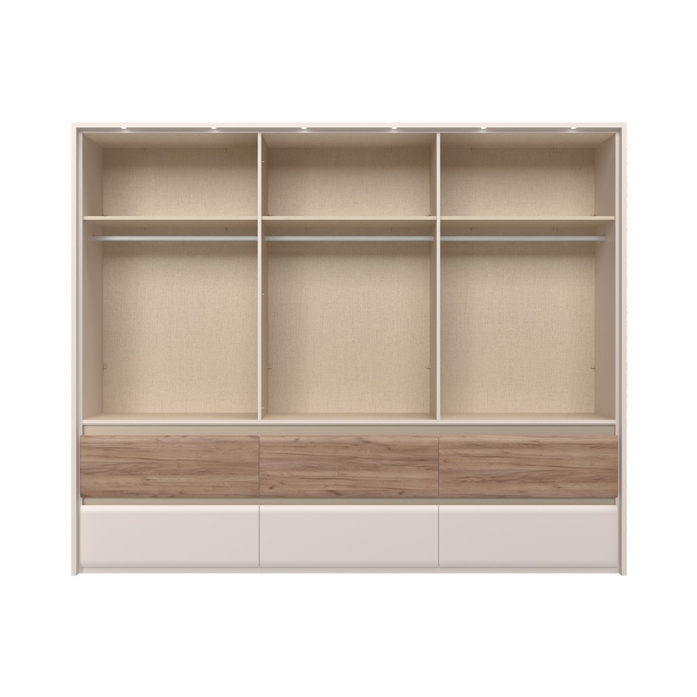 Omara vsebuje 3 police 6 predalov in 3 obešalne palice.