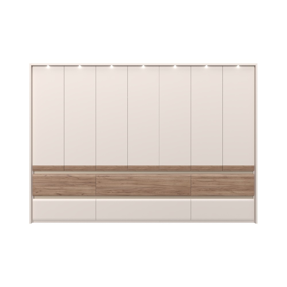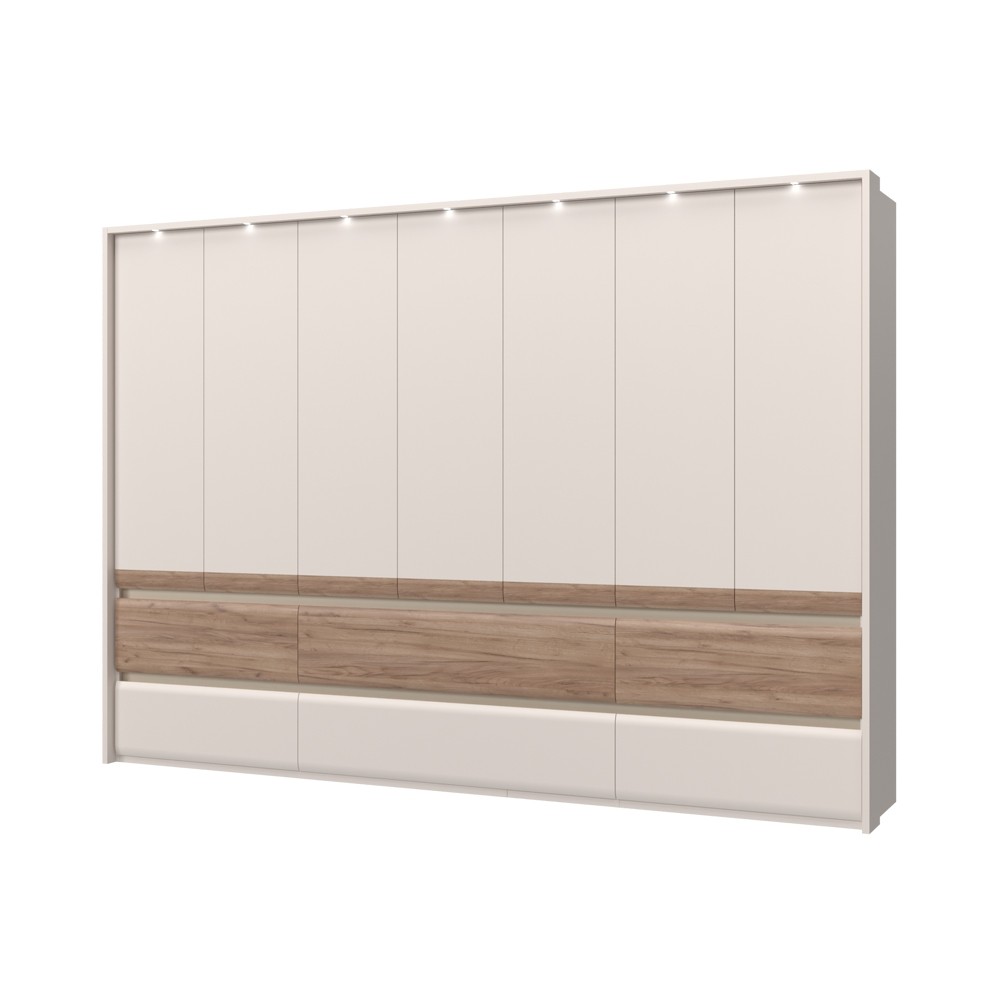 7-delna garderobna omara INVICTUS P76/IC je idealna izbira za vse, ki si želijo kombinacijo kakovosti, modernega dizajna in funkcionalnosti. Omara vsebuje 4 police, 4 obešalne palice in 6 predalov, ki poskrbijo, da bodo vsa vaša oblačila organizirana. Je kvalitetne izdelave in vsebuje dekorativni okvir ter LED osvetlitev.