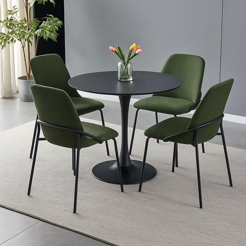- Popolna barvna usklajenost – zelena barva stolov doda prostoru energijo in svežino, ki jo boste občutili vsak dan.