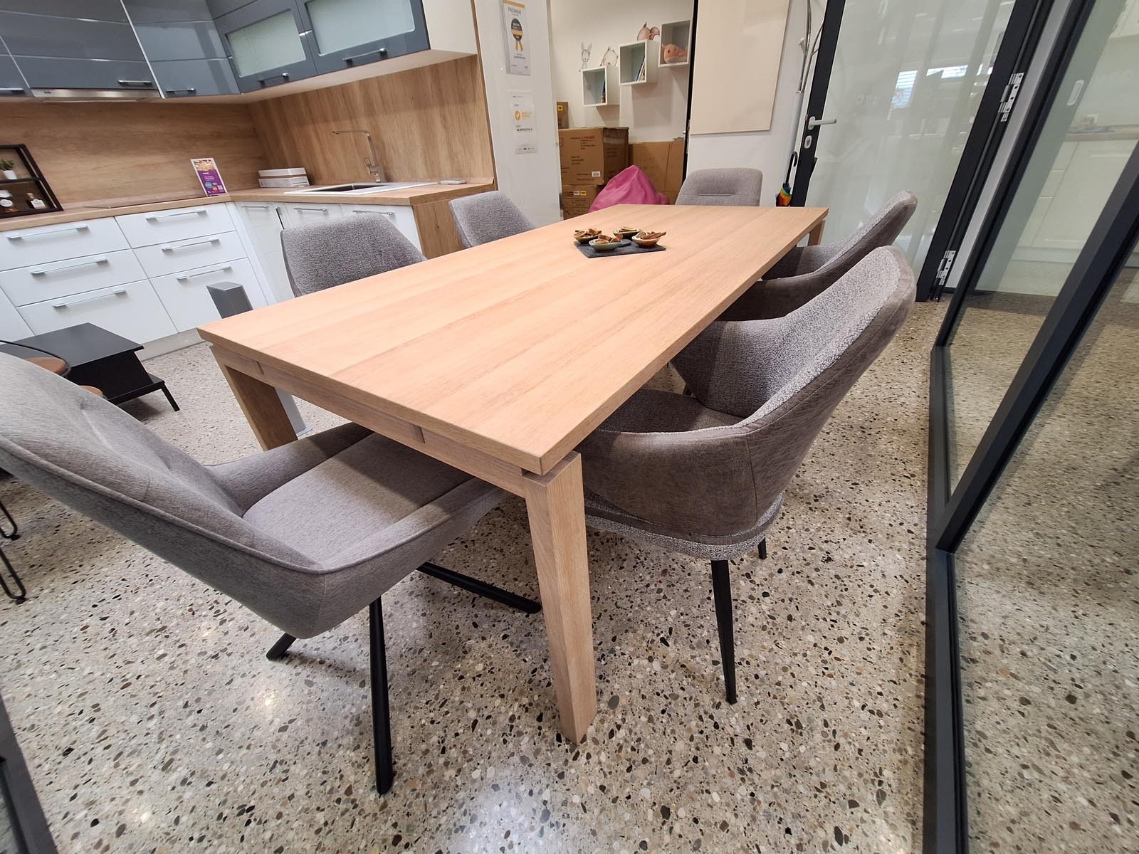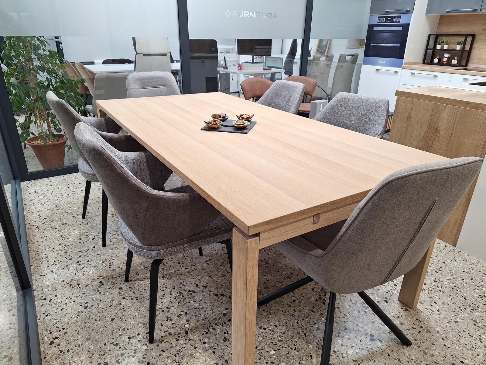 Akcijski jedilni set LEONE predstavlja popolno ravnovesje med toplino lesa, udobjem tkanin in elegantno funkcionalnostjo. Kombinacija mize ESVALD ter stolov ALANA in KANAD ustvari sodoben, a domač ambient, primeren tako za moderne kot klasične jedilnice.