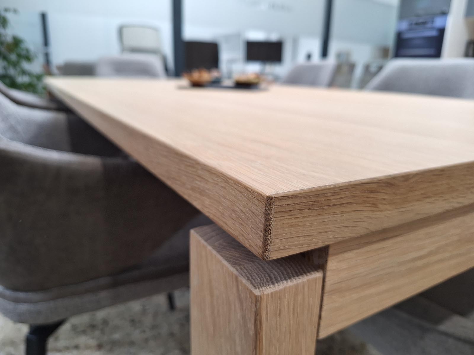 Miza ESVALD s svojim minimalističnim dizajnom in toplim tonom hrasta ponuja vsestranskost in eleganco. Belo pigmentirano in oljeno podnožje poudarja naravni značaj lesa, medtem ko mediapan plošča zagotavlja stabilnost in enostavno vzdrževanje.