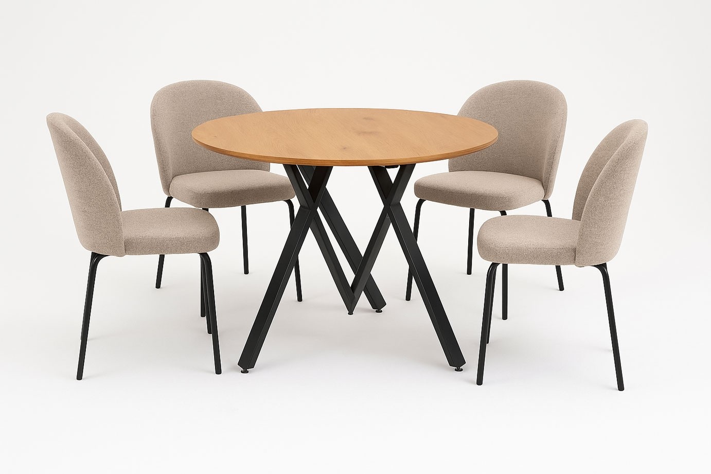 Akcijski jedilni set PATRICIJA je popolna izbira za tiste, ki cenite toplino naravnega videza in udobje sodobnih materialov. Okrogla miza TARN v kombinaciji z bež stoli MIRA ustvari harmonično in elegantno jedilnico, ki v vsak dom vnese občutek topline in sproščenosti.