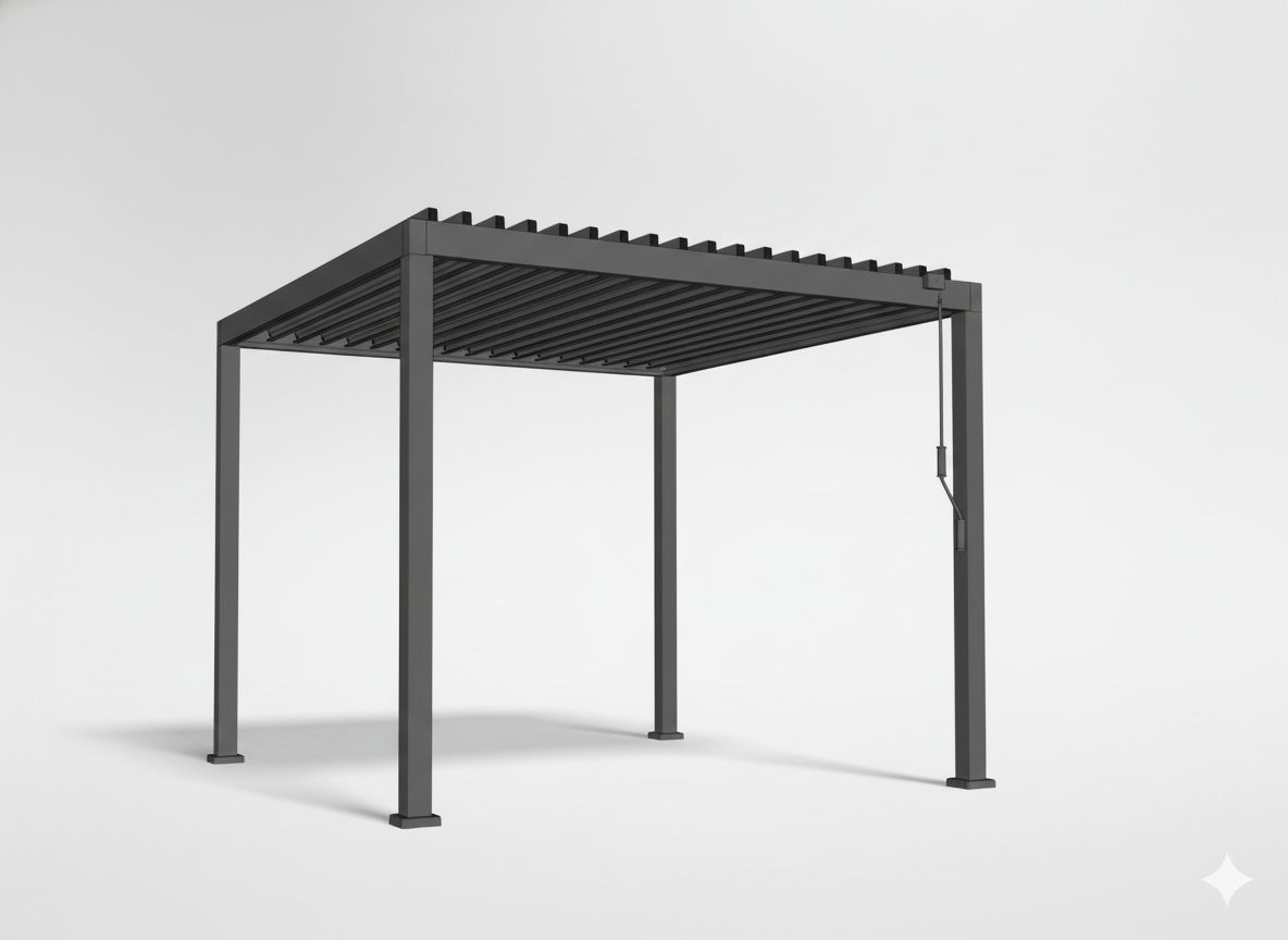 Aluminijasta vrtna pergola Leda (LED, siva, 3 x 3 m) ustvari pokrito zunanjo površino za celoletno uporabo na vrtu ali terasi. Izbrana barva, siva, ter materiali, kot so aluminij, ustvarijo usklajen videz in podprejo praktično uporabo. Dimenzija 3 x 3 x 2,5 m olajša načrtovanje postavitve.