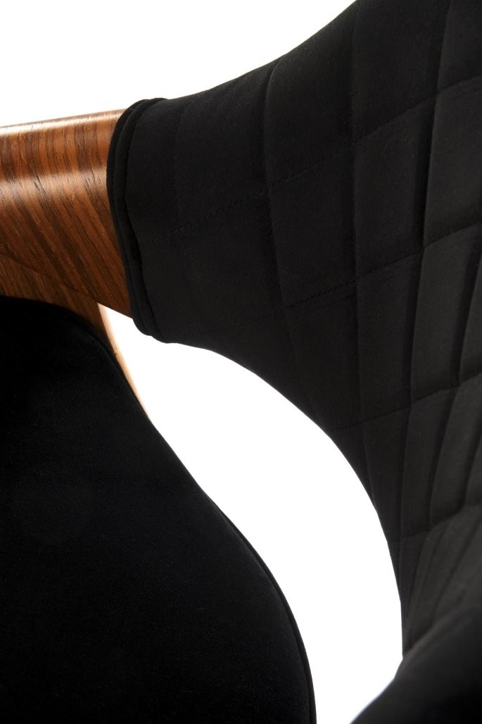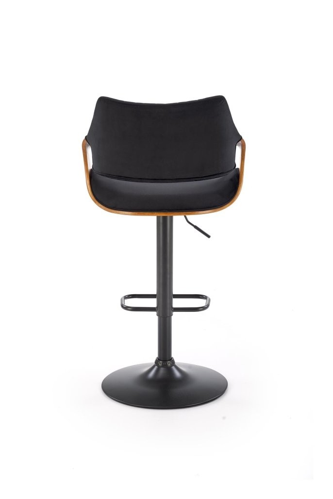Barski stol Areli združuje črne kovinske noge s sedežem iz umetnega usnja in furnirja oreha. Nastavljiva višina in elegantna črna barva ga naredita odličnega za moderne in klasične prostore.