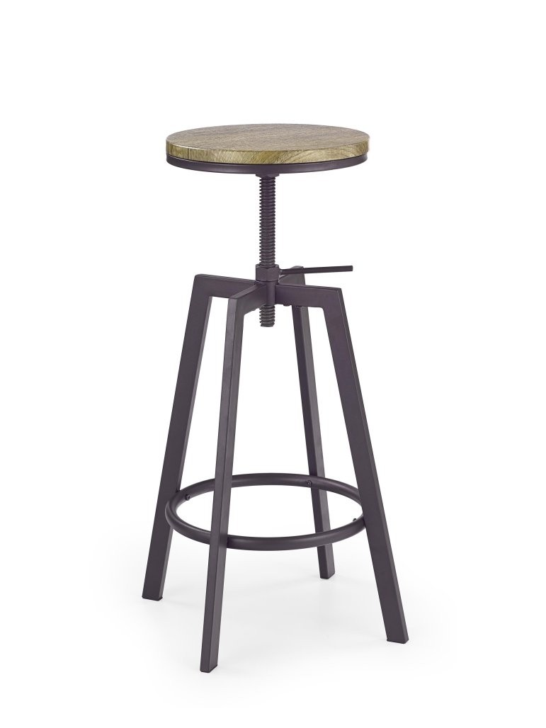 Barski stol Aslan v rustikalnem industrijski slogu ima sedež iz laminiranega MDF-ja v odtenku kave in črne kovinske noge. S prilagodljivo višino od 63 do 80 cm je odličen dodatek za industrijsko in vintage notranjost.