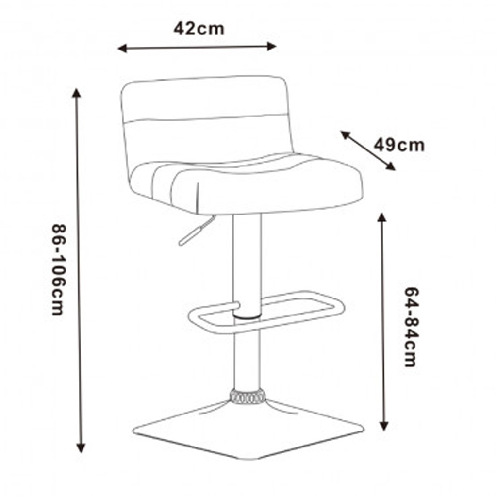 Prepustite se udobju barskega stola BILO, ki vas bo navdušil. Lahko si prilagajate višino sedišča od 64 do 84 cm s preprostim in učinkovitim plinskim mehanizmom v črnem nosilnem stebričku. Dodatno kvadratno opiralo za noge vam zagotavlja sproščeno in udobno sedenje, medtem ko je robustno črno podnožje iz kovine in je prašno lakirano za zaščito. Maksimalna obremenitev stola znaša 120 kg.