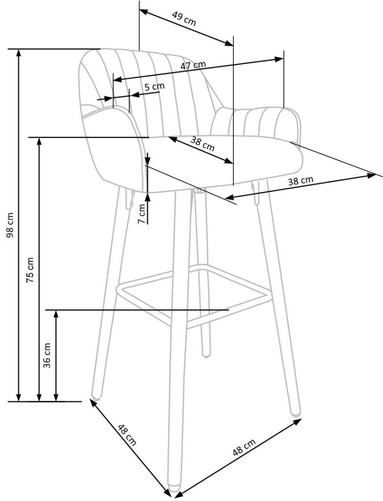 Barski stol Boron v skandinavskem slogu združuje naravni les oreha in sivo tkanino. Višina sedeža je 75 cm, na voljo pa je v treh barvah: sivi, temno zeleni in temno modri, kar mu daje univerzalen značaj za vsak prostor.