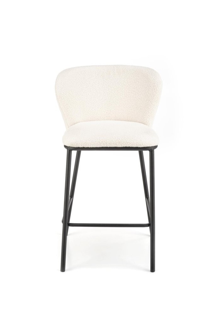 Barski stol Elaril z oblazinjenjem iz boucle tkanine v krem barvi in črnim kovinskim okvirjem. Prinaša sodoben videz z mehkim dotikom.