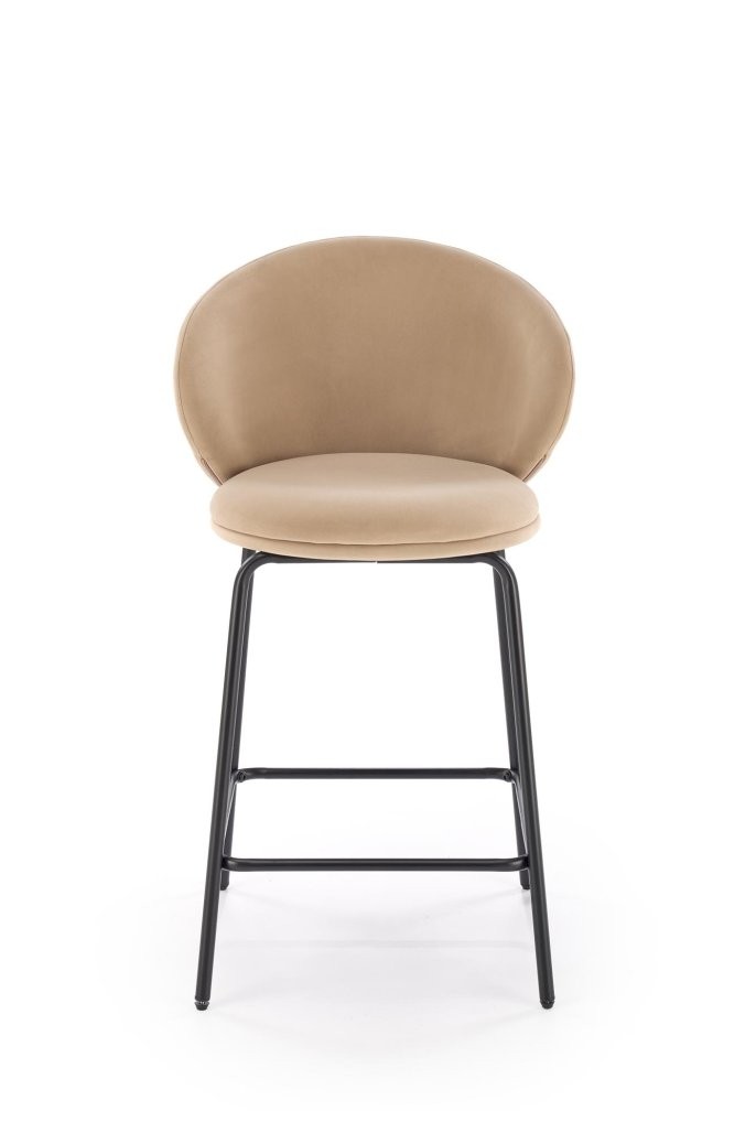 Barski stol Feren s črnim kovinskim ogrodjem in sedežem iz žametnega blaga v bež ali sivi barvi bo osrednji kos vsakega modernega ali prostora. Sedežna višina je 63 cm, celotna višina pa 92 cm za popolno udobje.