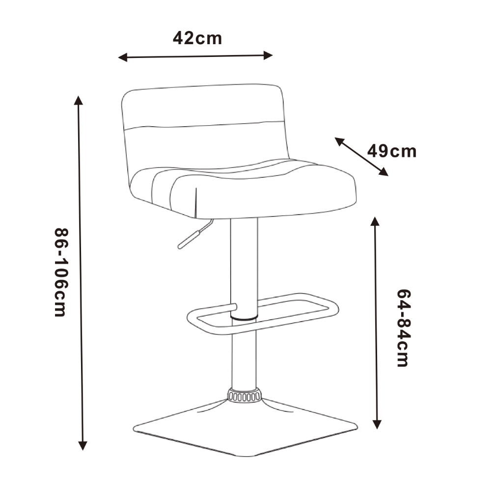 Odkrijte vrhunec udobja in stila z našim sodobnim barskim stolom GEA. Prevlečen s kvalitetnim umetnim PU usnjem v elegantni sivi barvi, ta stol ne prinaša le luksuznega občutka, temveč tudi trajnost in prefinjenost. Z nizkim naslonom za hrbet in vrtljivo funkcijo, ta stol ponuja dinamičnost in prilagodljivost, ki ju potrebujete za popolno doživetje sedenja. S plinskim mehanizmom lahko prilagodite višino sedišča od 64 cm do 84 cm.
