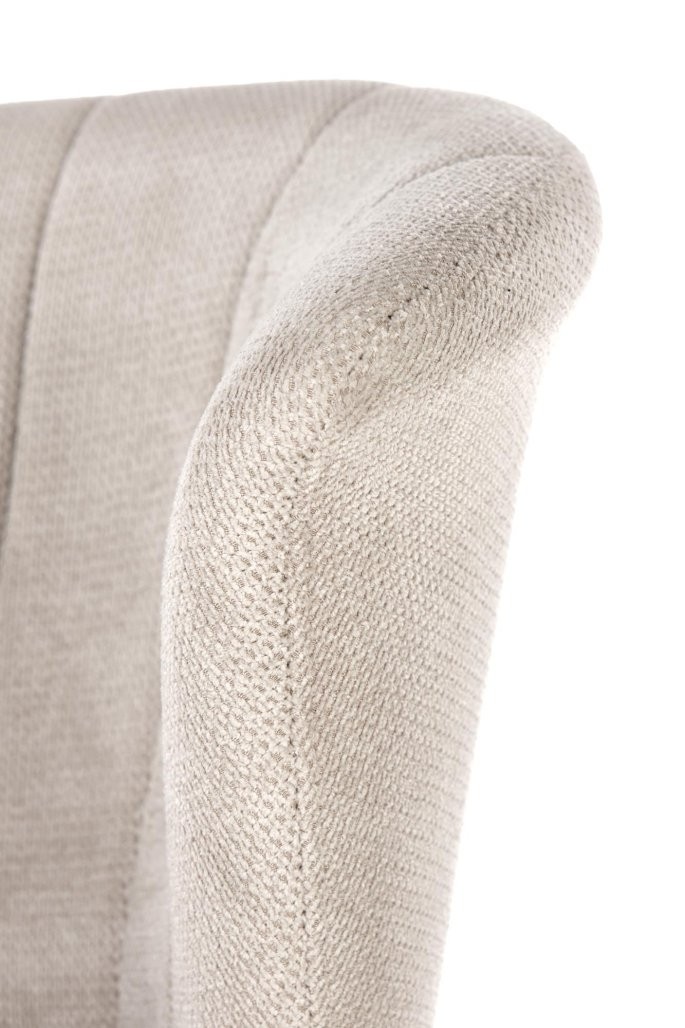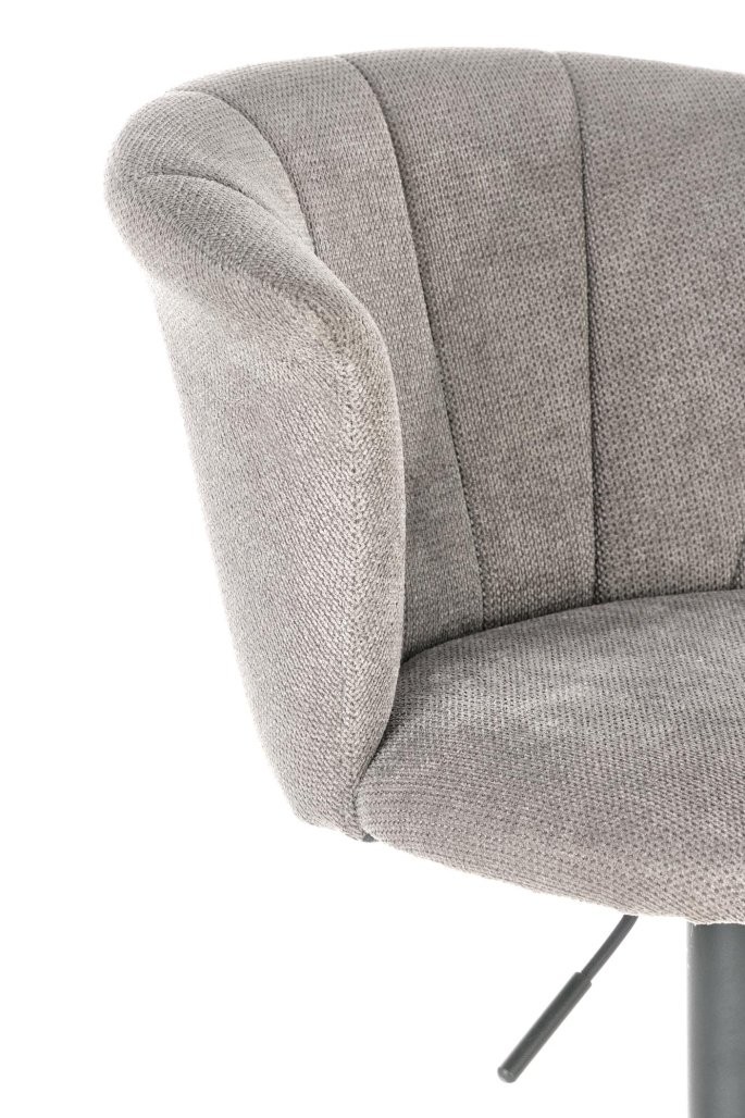 Barski stol Iman v bež barvi je nastavljiv po višini in je oblazinjen s prijetno tkanino, kar nudi eleganco v vsakem prostoru. Kovinski okvir v črni barvi zagotavlja trdno strukturo, primeren za moderno ali klasično notranjost.