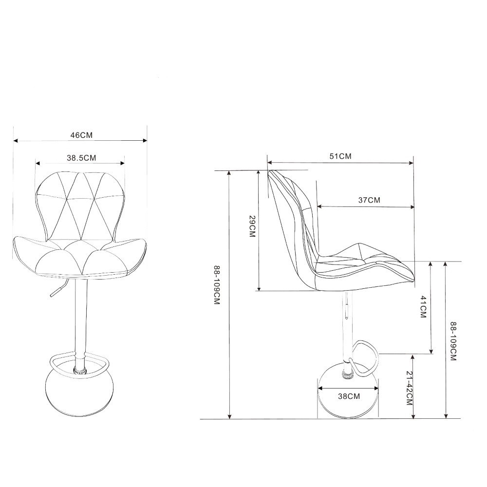 BARSKI STOL INDIRA II je moderen barski stol unikatnega izgleda z zanimivim dizajnom na sedišču in hrbtišču, ki ustvari moderen in atraktiven videz. Umetno usnje s katerim je oblazinjen poskrbi za maksimalno udobje med sedenjem. Podnožje je kromirano, stol je vrtljiv in nastavljiv po višini.