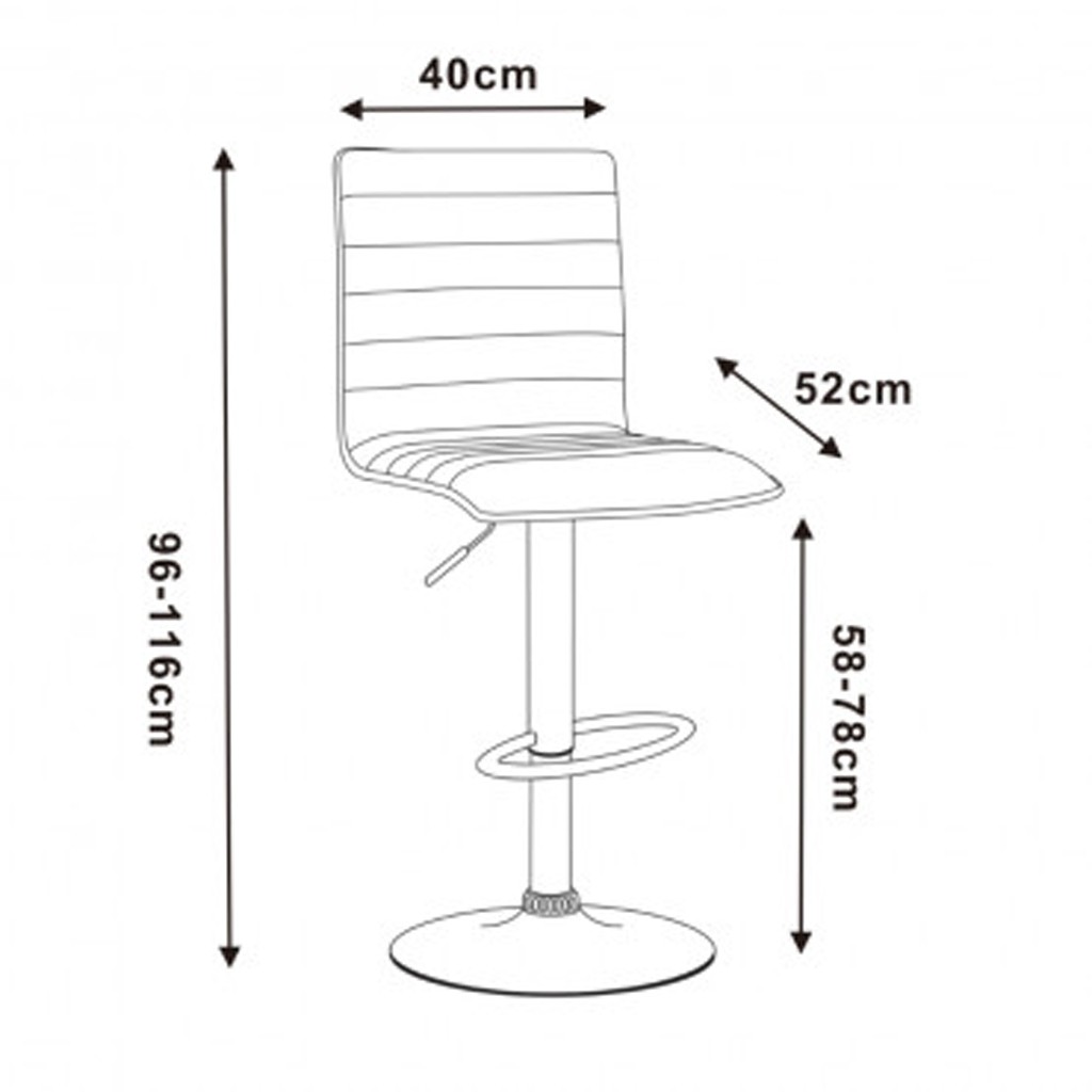 Ponudite sebi doživetje razkošja in funkcionalnosti z našim osupljivim barskim stolom LINE III. S svojo prefinjeno črno oblogo iz kvalitetnega umetnega PU usnja. Z vrtljivo funkcijo in plinskim mehanizmom se ta stol prilagaja prav vsakemu, ki si zaželi kombinacijo udobja in stila. Opiralo za noge je skrbno postavljeno, da zagotavlja še dodatno udobje pri dolgotrajnem sedenju. Maksimalna obremenitev pa znaša 120 kg.