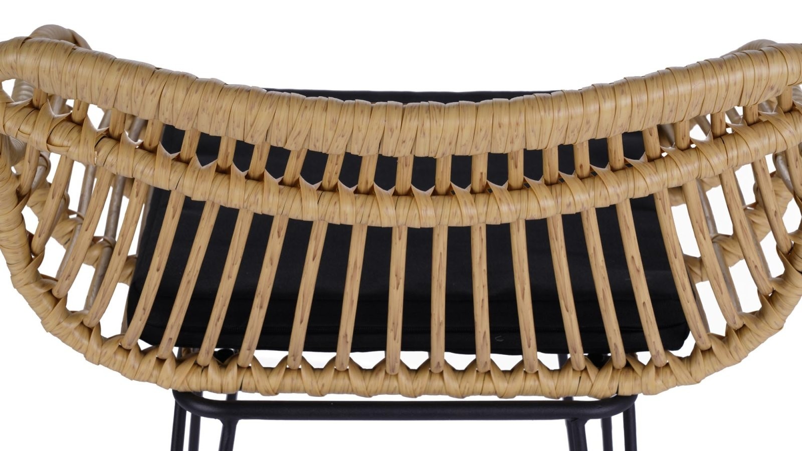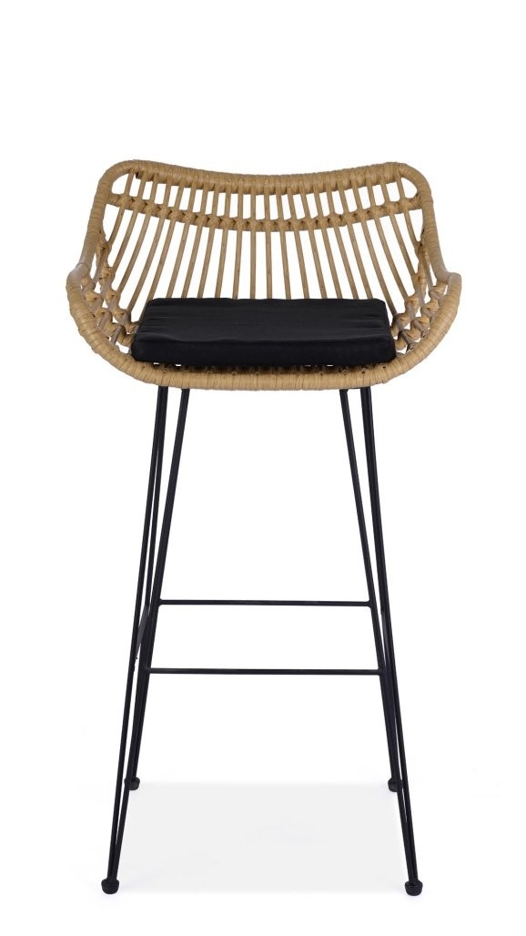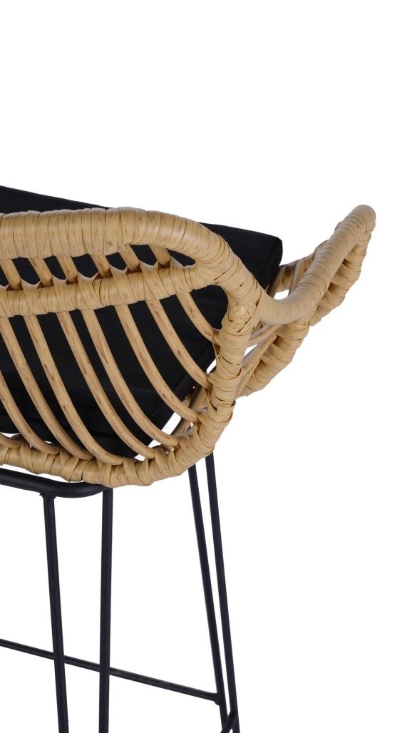 Barski stol Molen v skandinavskem in boho slogu ima udobno blazino iz tkanine ter naravni videz, zahvaljujoč sintetičnemu ratanu in črnemu kovinskemu ogrodju. Idealen za sproščeno in sodobno vzdušje.