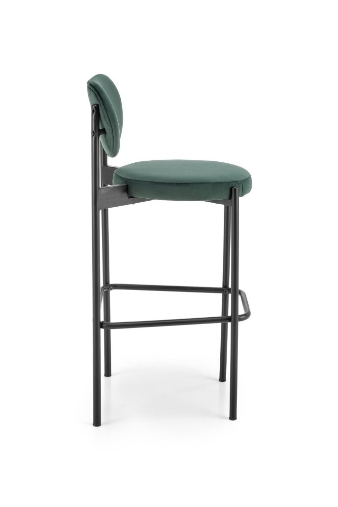 Barski stol Olenar s črnim kovinskim okvirjem in žametno zeleno tkanino prinaša moderen pridih vsakemu prostoru. Na voljo v različnih barvah za prilagoditev vsakemu stilu.