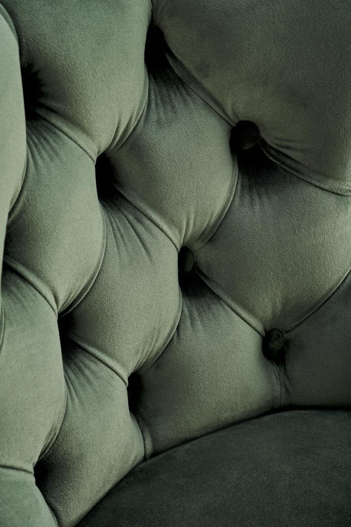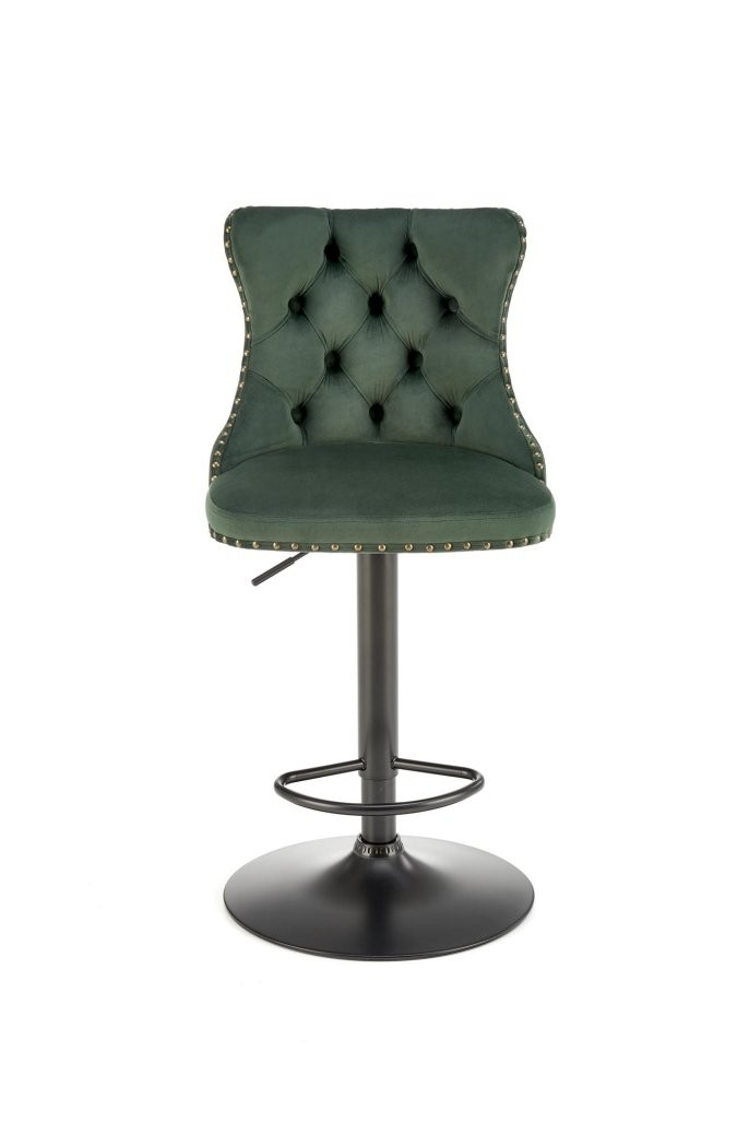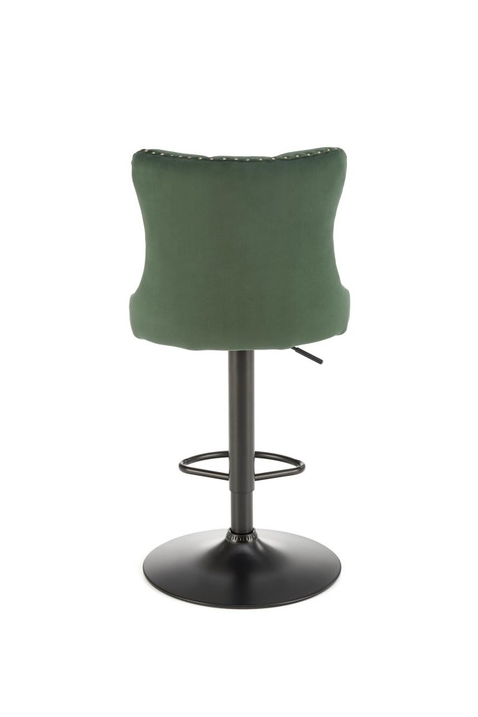 Barski stol Olenir z nastavljivo višino, oblazinjen z zelenim žametom in kovinskim črnim okvirjem. Dodaja pridih elegance in klasičnega sloga vsakemu prostoru.