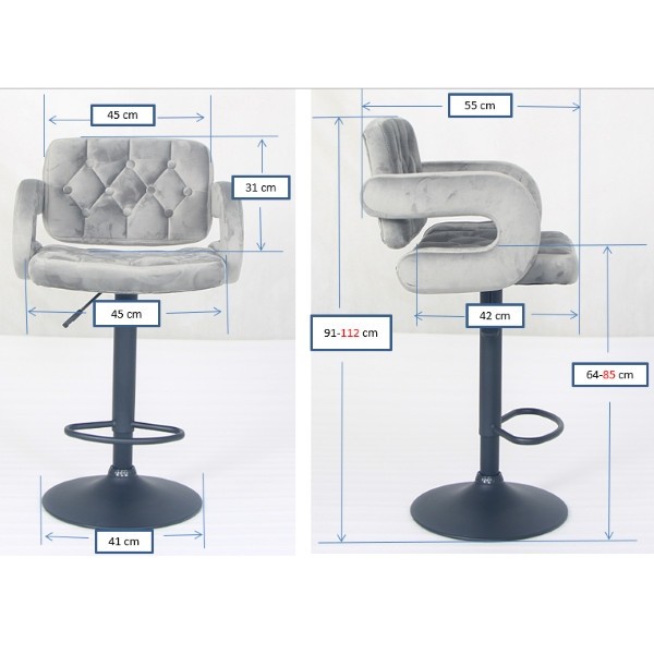 Potrebujete moderni barski stol, ki bo popestril vašo kuhinjo? Barski stol SAUDI se ponaša z modernim dizajnom in živahnimi barvami, ki popestrijo vsak dom! Stol je oblazinjen v kvalitetno in udobno žametno tkanino, ki poskrbi za maksimalno udobje med sedenjem!