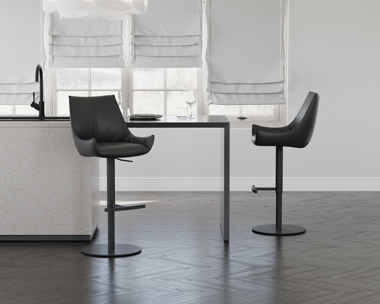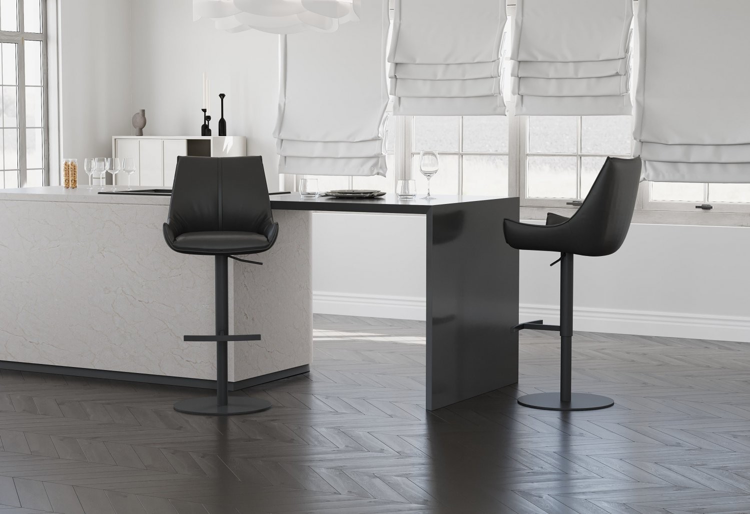 Barski stol TRENDBAR (črna) je popolna izbira za vsak moderen dom ali lokal. Izdelan iz kakovostnega usnja v elegantni črni barvi, nudi udobje in stil ter nastavljivo višino za popolno prilagoditev vašim potrebam.