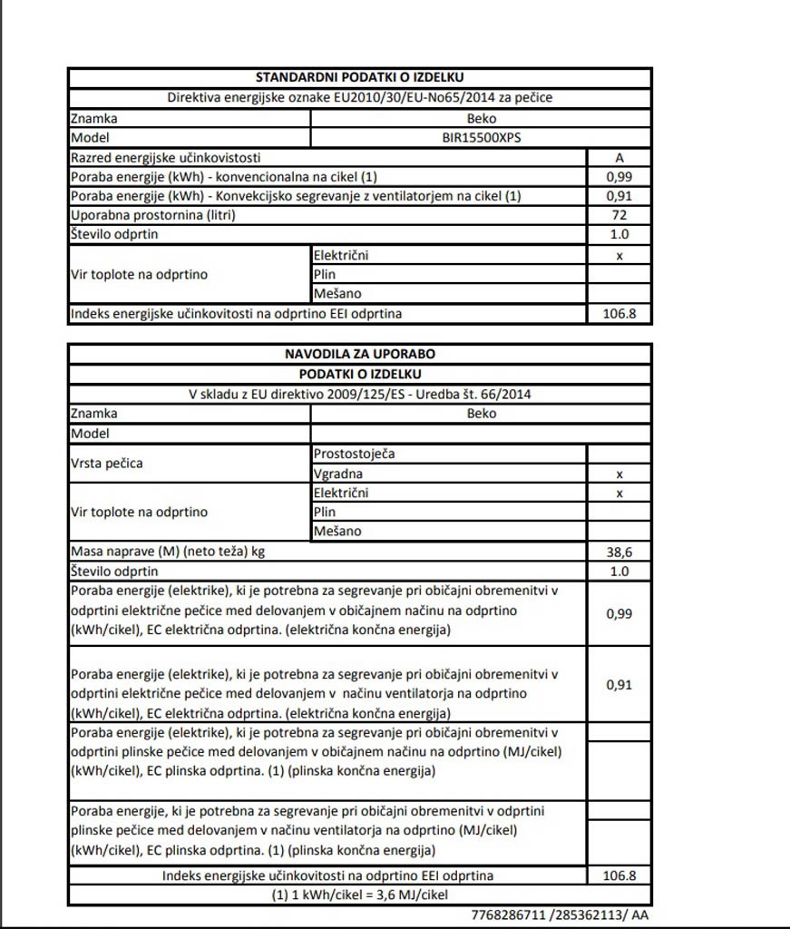 Vgradna pečica Beko BIR15500XPS se ponaša s pirolitičnim čiščenjem, 15 programi peke, med katerimi izstopa tehnologija prostorske peke – Surf, ventilacijska peka, trojno zasteklitvijo vrat, hladilnim ventilatorjem, programom za odmrzovanje in ohranjanje toplote, elektronskim upravljanjem in osvetlitvijo notranjosti. Vgradna pečica omogoča tudi peko s pomočjo žara in peko pice, elektronska varnostna ključavnica pa preprečuje spreminjanje programov in odpiranje vrat med uporabo. Priloženi so 1 plitek, 1 globok pekač, rešetka in izvlečna vodila.