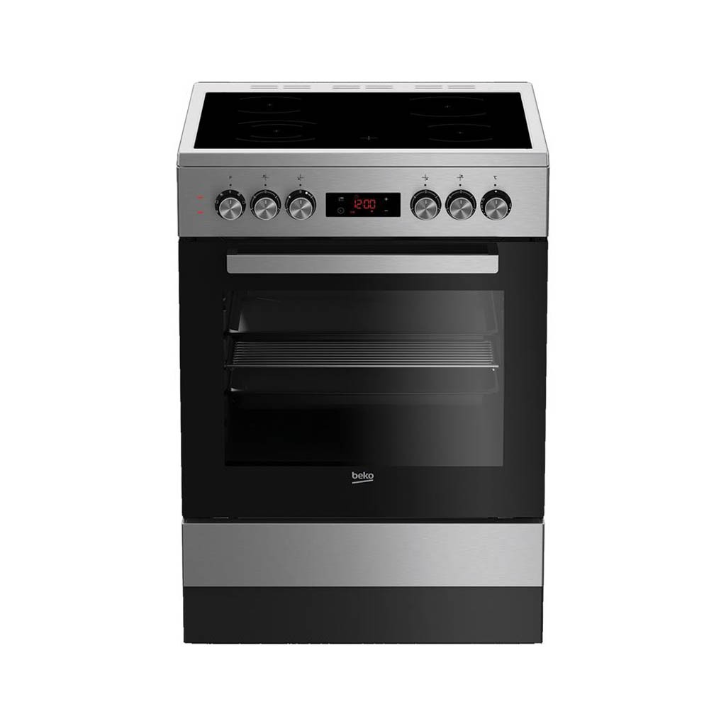BEKO FSE67310GX prostostoječi štedilnik Prostostoječi štedilnik Beko FSE67310GX odlikuje steklokeramično kuhališče s štirimi kuhalnimi površinami in pečico s prostornino 66 litrov. Štedilnik se ponaša tudi z elektronsko programsko uro, troslojno zasteklitvijo vrat pečice in osvetlitvijo notranjosti, ki omogoča boljši pregled pri peki jedi.