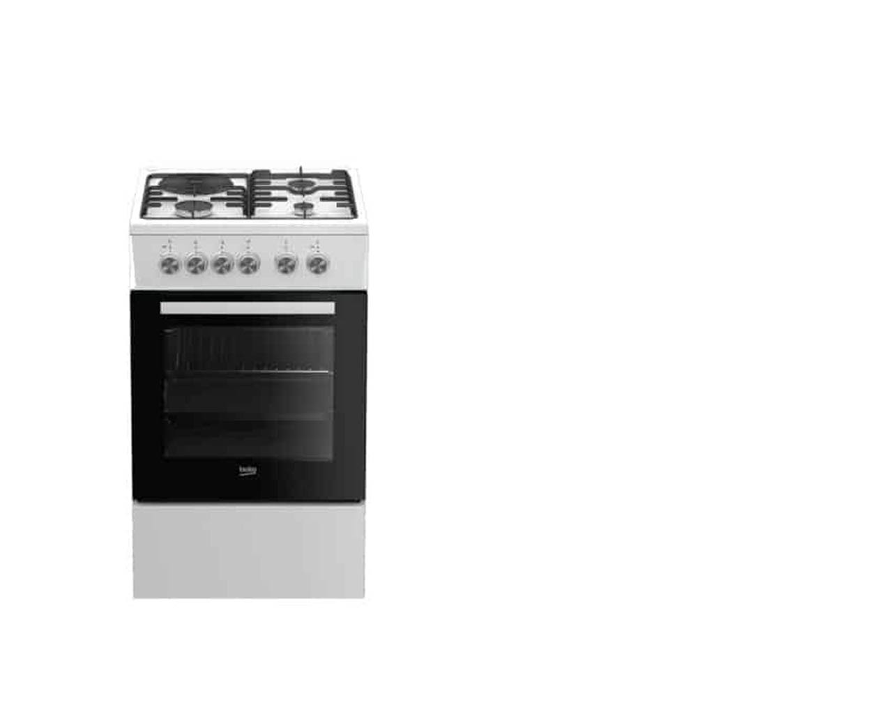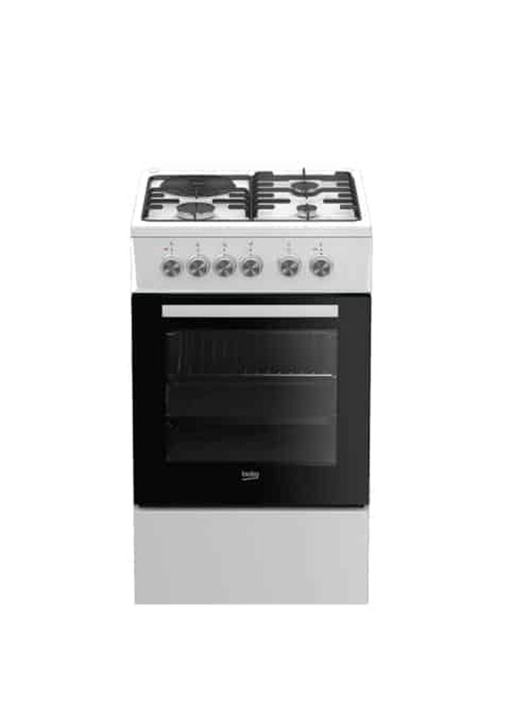 Beko kombinirani prostostoječi štedilnik FSS53000DW: ima štiri kuhališča, pečico s prostornino 66 litrov in steklen pokrov.