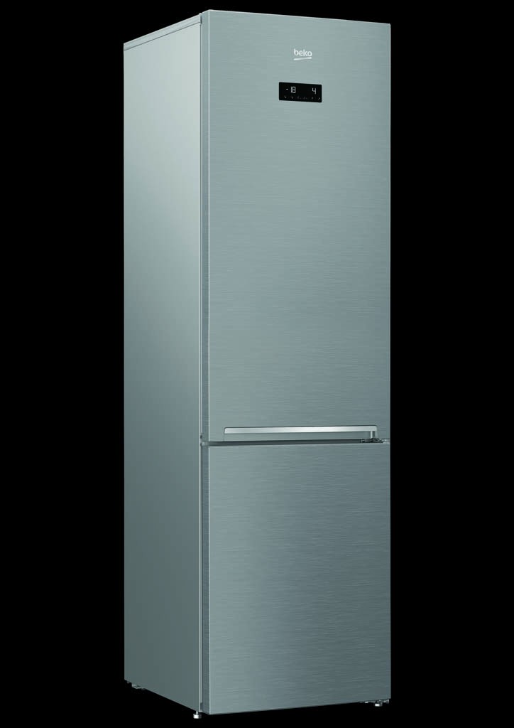 Kombinirani hladilnik Beko RCNA406E40ZXBN z zamrzovalnikom spodaj navdušuje s tehnologijo NeoFrost, ki pripomore k 2x hitrejšemu hlajenju, samodejnim odtaljevanjem in predalom za daljšo svežino, ki poskrbi, da sadje, zelenjava, ribe in meso ostanejo sveži dlje časa. Zamrzovalni predel ima 3 prostorne predale. Zaradi posebnih tečajev se vrata odpirajo vzporedno s stransko stranico hladilnika, kar skupaj z možnostjo zamenjave strani odpiranja vrat omogoča optimalno prilagajanje vsakemu prostoru. Kombinirani hladilnik se nahaja v energetskem razredu E, glasnost njegovega delovanja pa znaša le 38 dB.