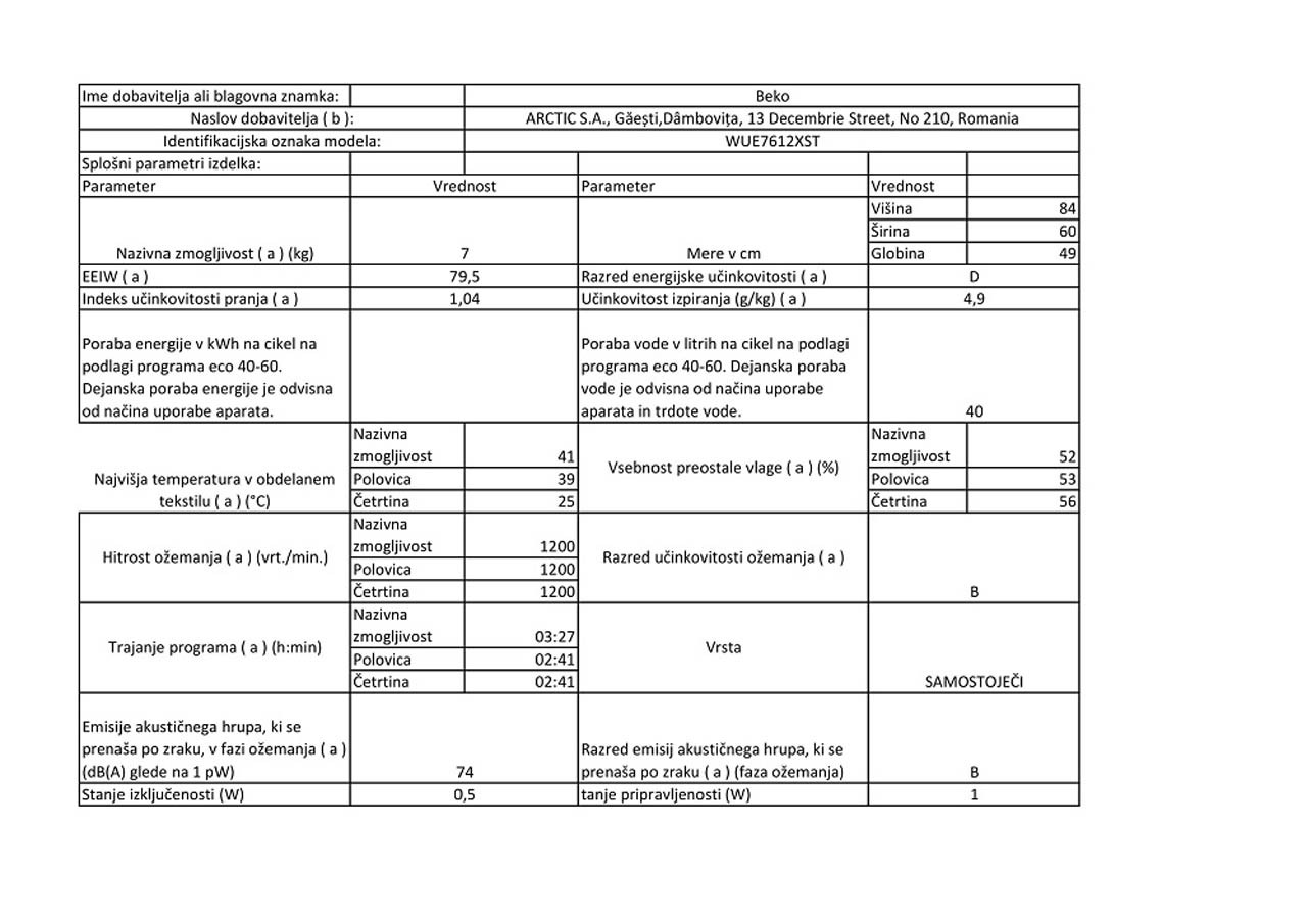 Pralni stroj Beko WUE7612XST ima kapaciteto pranja 7 kg in je idealen za družine in pare. Spada med varčne pralne stroje z energijsko učinkovitostjo D in bobnom iz nerjavečega jekla s tehnologijo AquaWave – za nežno pranje vaših oblačil. Poleg običajnih programov ima na voljo tudi program za higiensko čisto perilo, puh, športna oblačila in program za volno. Omogoča tudi funkcijo Fast+ s katero lahko pohitrite izbrani program, ko želite. Program DrumClean pa bo poskrbel, da bo tudi vaš boben higiensko čist.