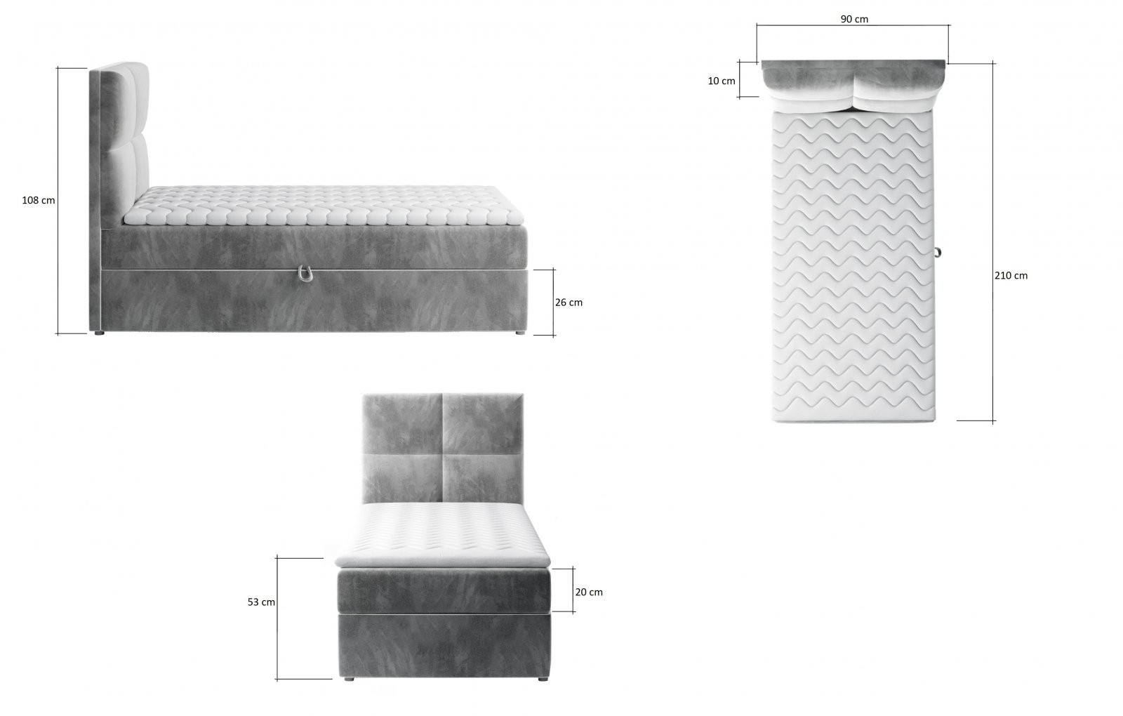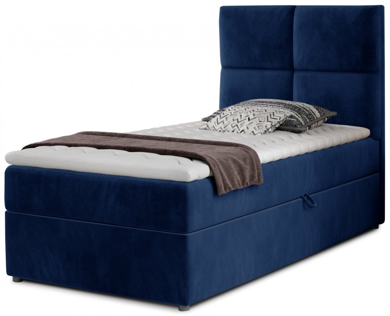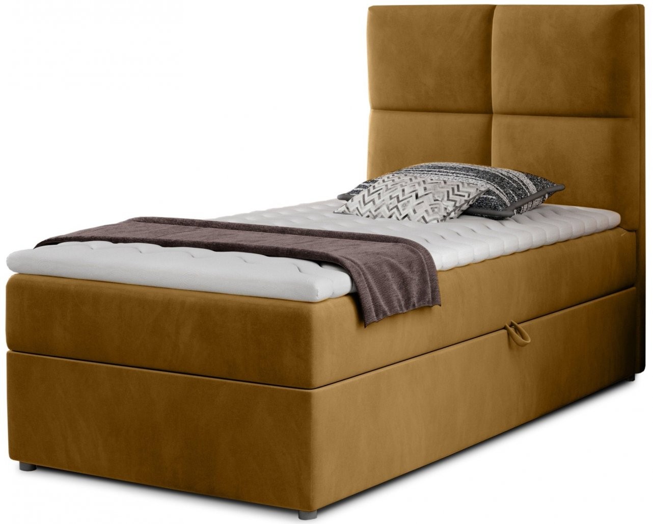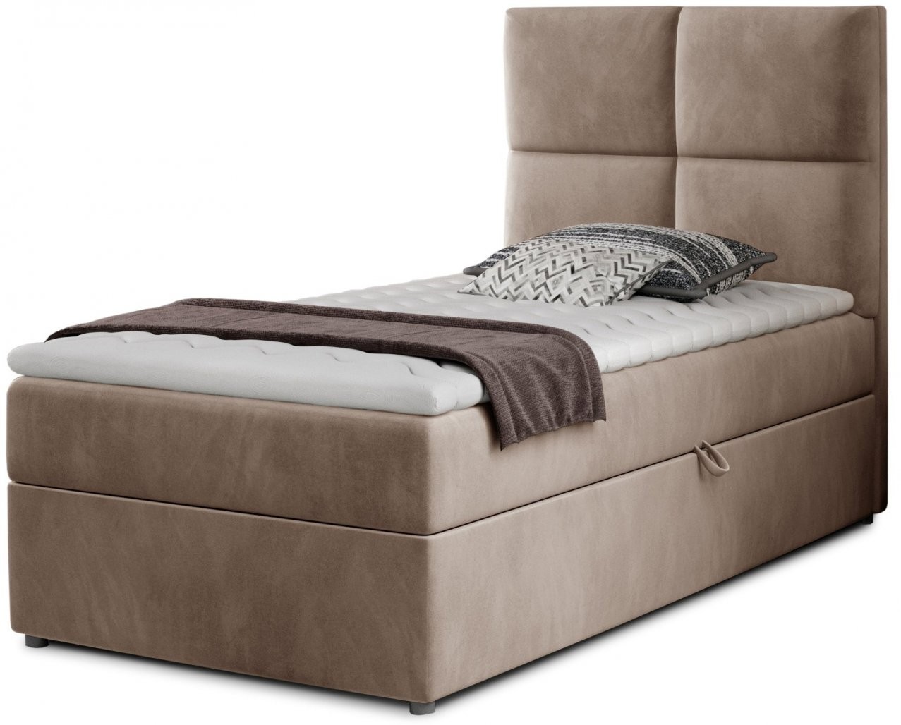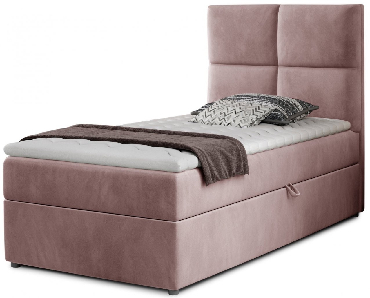 Boxspring postelja Rivia 90x200 je popolna izbira za vse, ki si želijo udobno, elegantno in funkcionalno posteljo za otroško, mladinsko ali gostinsko sobo. Kljub svoji kompaktni velikosti ponuja maksimalno udobje in praktičnost, ki jo boste cenili vsak dan.