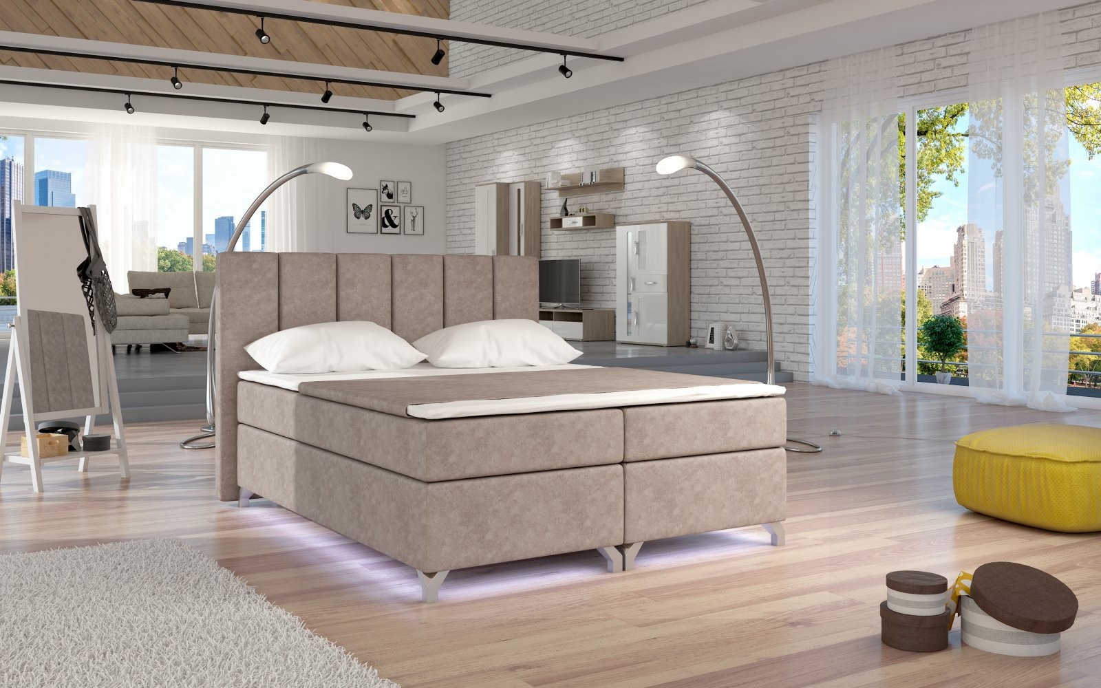 Boxspring postelja Basilio je popolna izbira za vse, ki iščejo udobje, funkcionalnost in estetski videz v spalnici. S svojo kompaktno zasnovo in elegantnim videzom se prilega vsakemu prostoru, ne glede na kvadraturo.