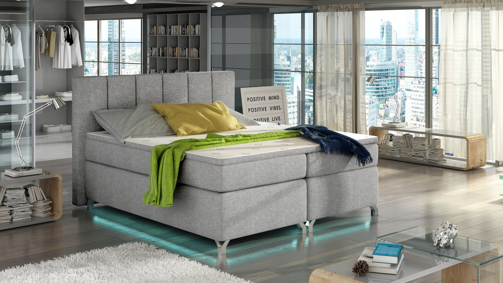 Postelja je na voljo v treh dimenzijah – 140/160/180 x 200 cm – in vključuje večplastno strukturo ležišča za optimalno udobje in podporo telesu med spanjem.