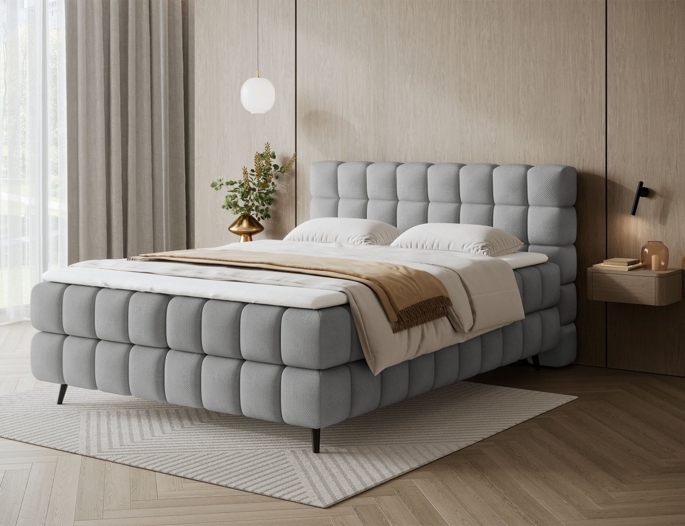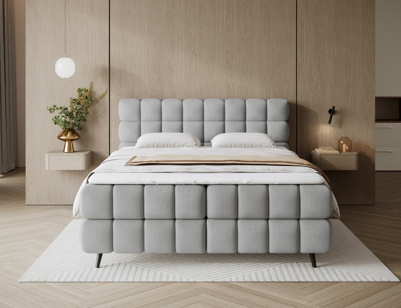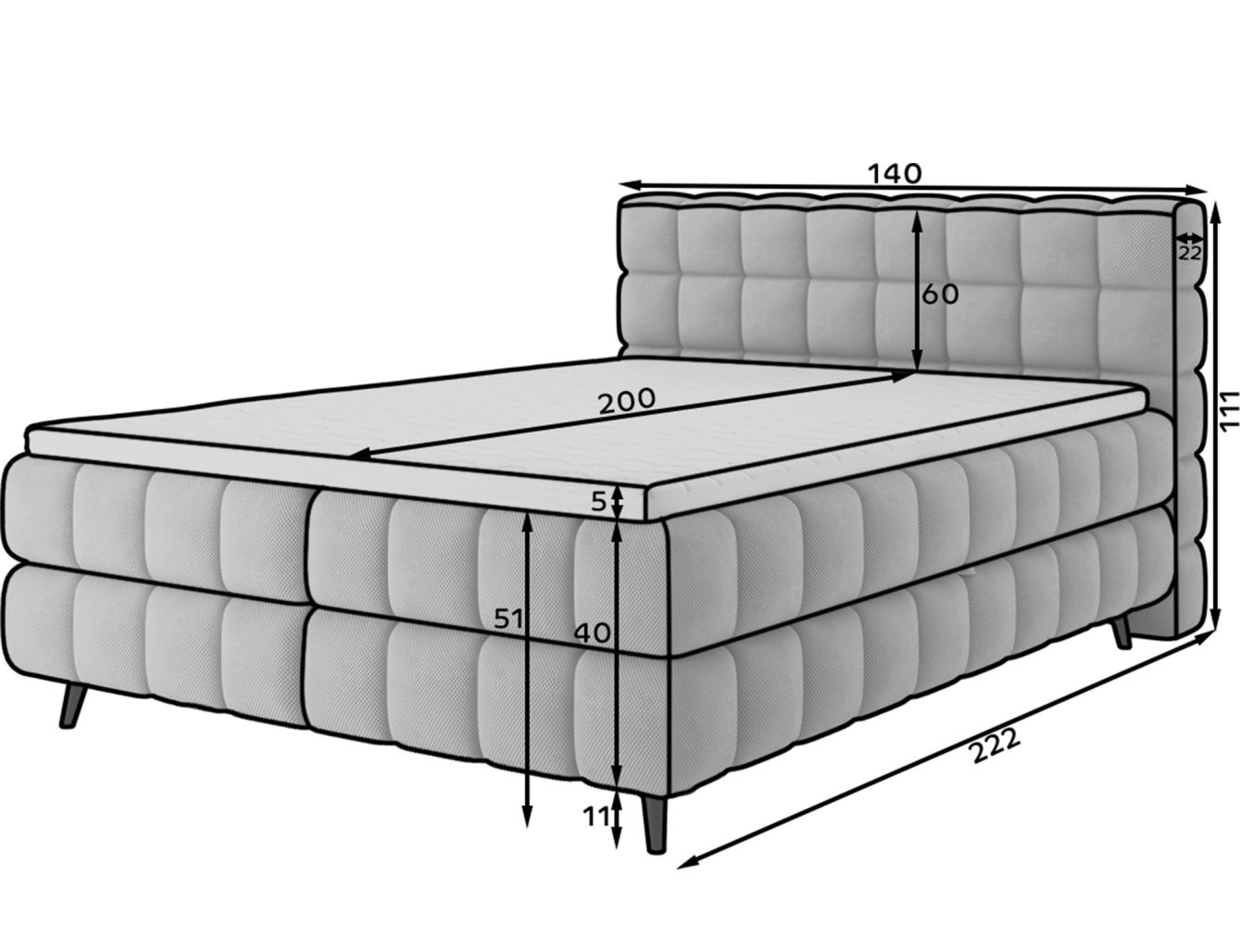 Boxspring postelja Sabeno je elegantna in funkcionalna izbira za vsako moderno spalnico. Zaradi svoje moderne zasnove se odlično poda tako k minimalističnim kot tudi k bolj izrazitim notranjim ureditvam. Skupna višina konstrukcije je 111 cm, globina pa 222 cm, kar postelji daje stabilen in impresiven videz. S svojo estetsko dovršenostjo in visokokakovostnimi materiali je postelja Sabeno idealna izbira za tiste, ki cenijo udobje, vzdržljivost in stilsko pohištvo v spalnici.