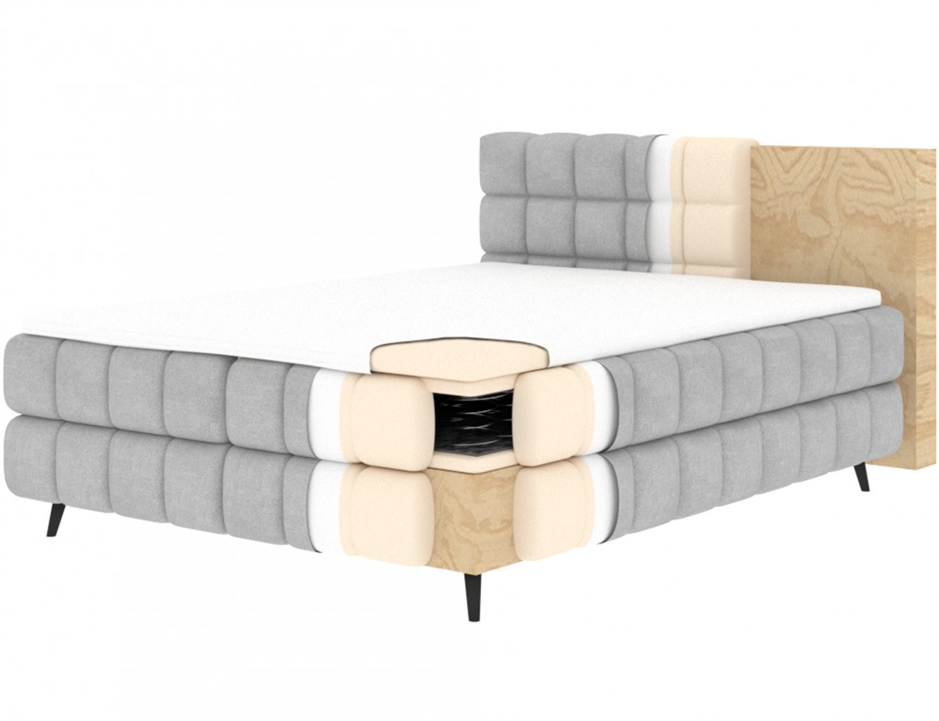 Boxspring postelja Sabeno združuje funkcionalnost in visoko kakovost izdelave. Črne lesene noge dopolnjujejo celoten dizajn in dodajajo subtilno eleganco ter lahkotnost. Zaradi svoje vzdržljivosti in premišljenega dizajna vam bo ta kontinentalna postelja zagotavljala udoben in miren spanec še vrsto let.