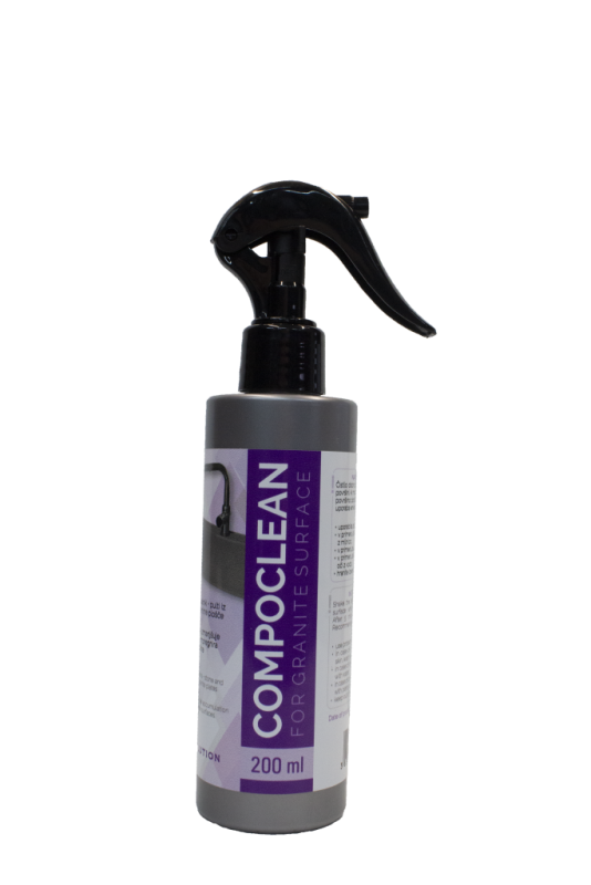 Čistilo COMPOCLEAN je čistilno in zaščitno sredstvo, ki je namenjeno za granitne pomivalnike. Očistite in zaščitite vaše korito ali katerokoli granitno površino s COMPOCLEAN-om, s katerim bo granit ostal lepo ohranjen. Velikost pakiranja je 200ml.