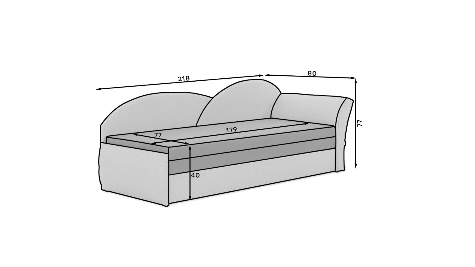 Kavč Aga je popolna izbira za otroško sobo, saj združuje udobje, funkcionalnost in privlačen dizajn. S svojimi dimenzijami 218 x 80 x 77 cm omogoča prijeten počitek podnevi in ponoči. Njegova posebnost je izvirna oblika naslonjala in sedeža, ki je na voljo v enobarvnih in vzorčastih različicah, kar omogoča prilagoditev glede na okus vašega otroka.