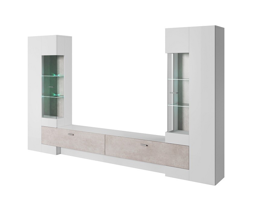 Dnevna soba BEAUTY bo uresničila vaše želje po najmodernejšem regalu. Edinstven dizajn bo pritegnil marsikateri pogled. Visoke omare vam bodo nudile prostor in moderen stil v vsakem domu. Obogatite svoj prostor s pohištvom v svojem slogu.