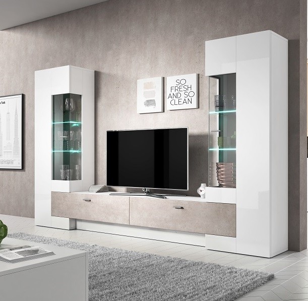 Dnevna soba BEAUTY vam bo nudila več kot dovolj prostora za vse vaše stvari in poskrbela, da bodo urejeno pospravljene. V stenskih omaricah pa boste lahko imeli vaze in druge dodatke. Dodatno lahko naročite tudi RGB LED osvetlitev, ki bo zagotovo popestrila vzdušje v prostoru.