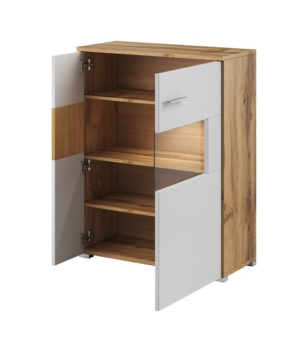 Dnevna soba BONA je izdelana iz iverne plošče oplemenitene z melaminsko folijo. Visoko kvaliteten in trpežen materijal je na voljo v dveh barvah, ki se bosta odlično podali v vsak prostor. Dobra in kakovostna izdelava zagotavljata dolgo življenjsko dobo pohištva.