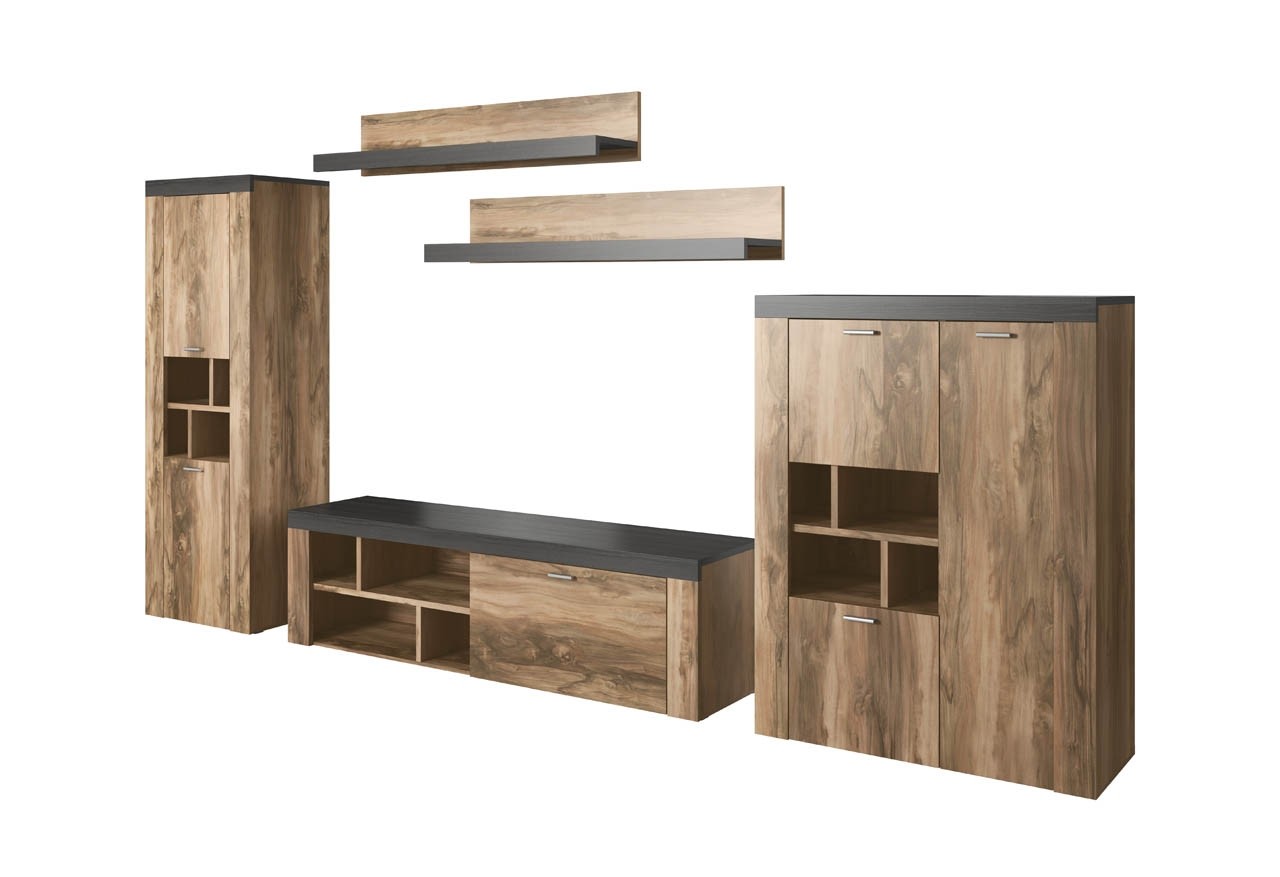 Dnevna soba ERIKA vključuje 5 funkcionalnih elementov, ki vam nudijo obilo prostora za shranjevanje in odlaganje. Razstavite svoje najljubše slike, knjige in dekoracije na odprtih poličkah, v omare pa lahko pospravite razne revije, družabne igre, pomembne papirje in ostale poljubne predmete, katere želite imeti dobro organizirane. Dnevna soba je na voljo tudi v drugih barvah!