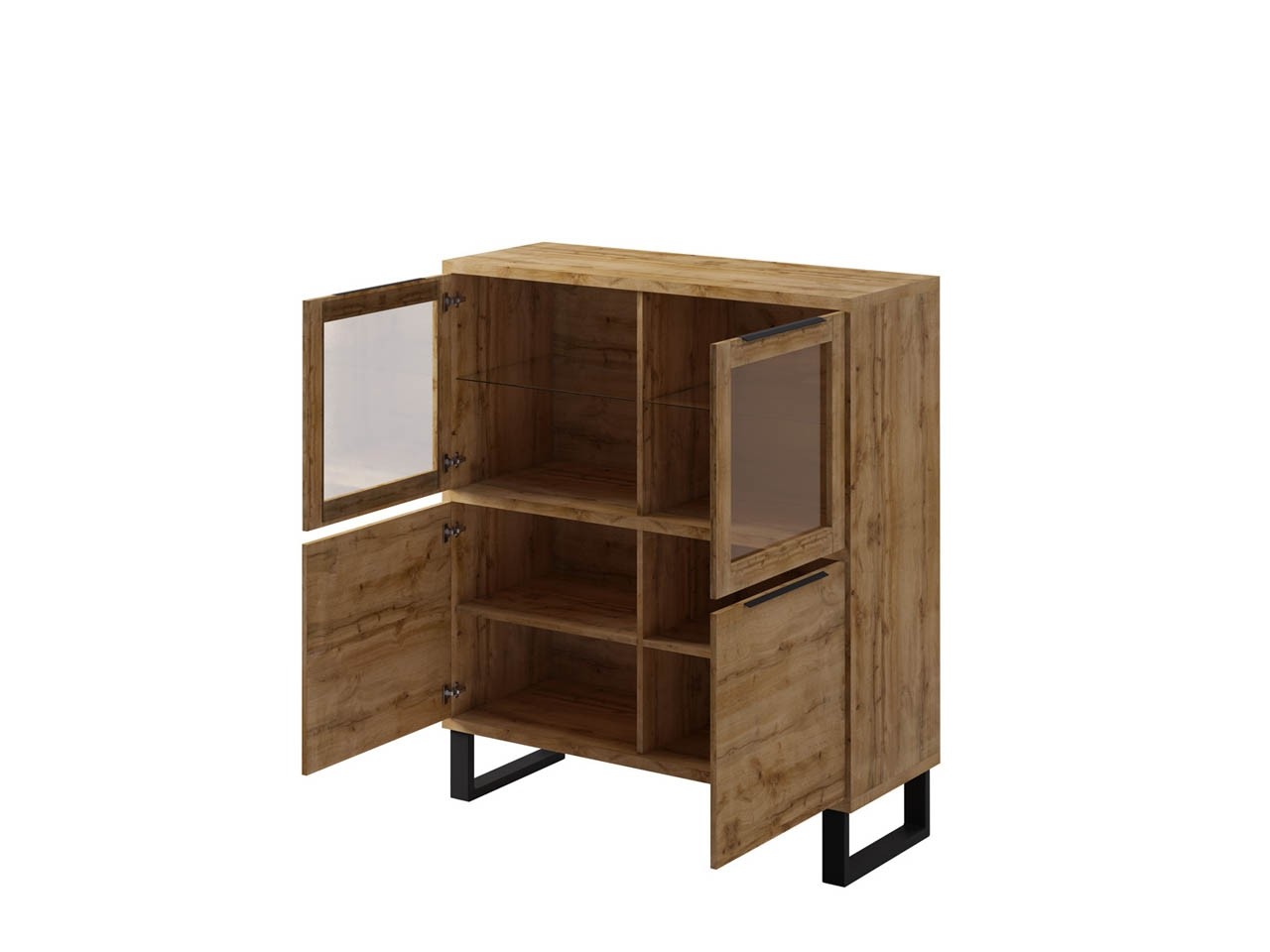 Opremite svoj dnevni prostor z dnevno sobo HANS, ki se ponaša z modernim industrijskim dizajnom, ki izgleda odlično v vsakem domu ter v njem ustvari prijeten ambient za druženje in sproščanje. Set vključuje visoko vitrino, nizko vitrino ter TV omarico, zato boste imeli obilo prostora za shranjevanje in dobro organizacijo!