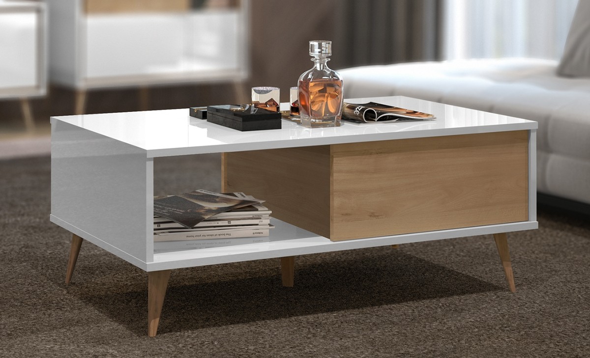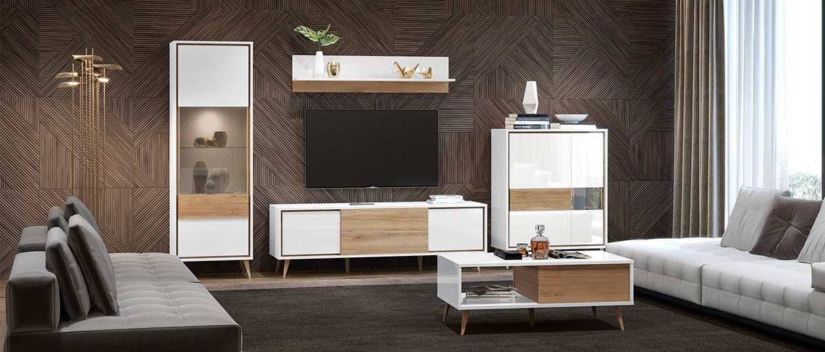 Dnevna soba RADDA VIDA se ponaša z imenitnim retro videzom, ki je bil moderen v 60. letih. Lesene nogice pripomorejo k retro videzu, visoki sijaj bele barve in pacifičnega oreha pa dodata bolj moderen pridih, ki še bolj polepša vaš dnevni prostor.