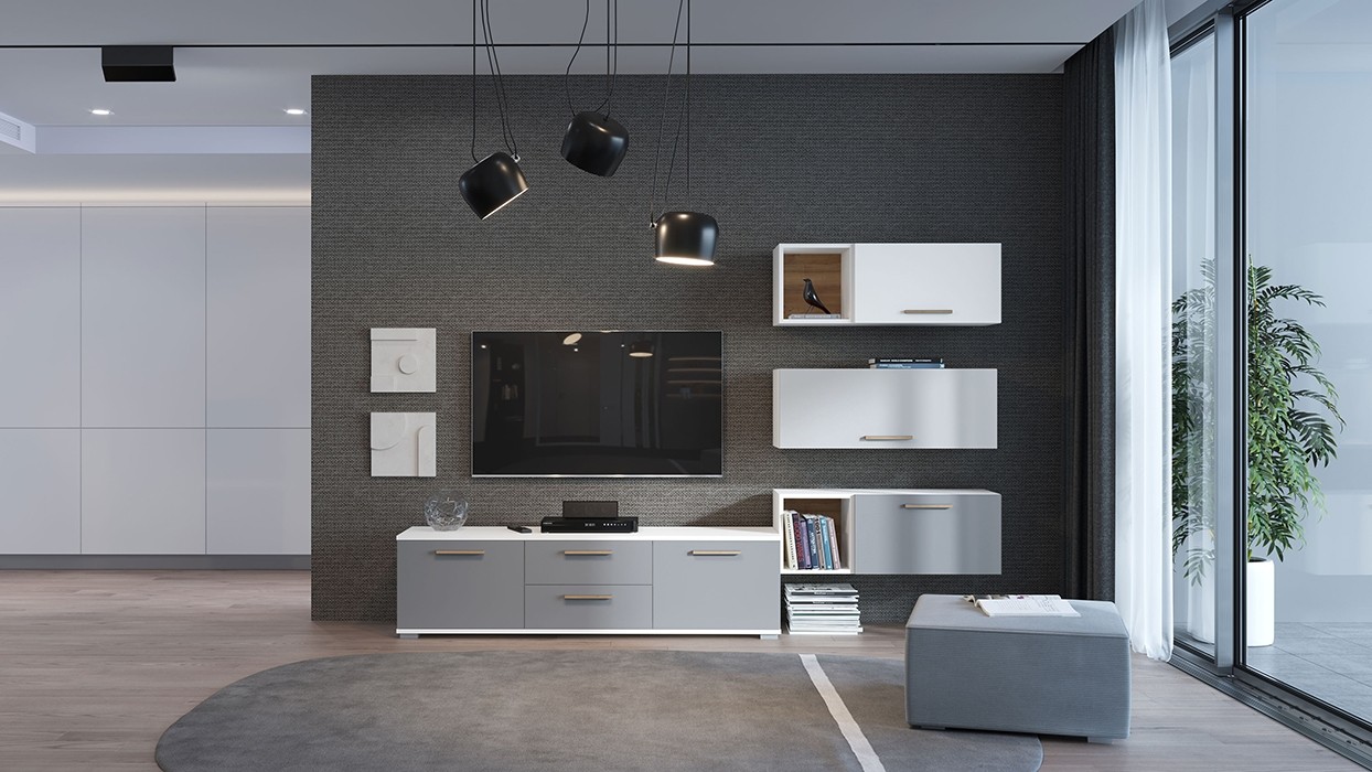Izboljšajte svoj dnevni prostor s privlačnim ARC setom. Ta set vsebuje tri omarice in dve polici različnih velikosti ter TV omarico. Police so idealne za razstavo knjig ali okrasnih predmetov, predali pa varno skrijejo vaše multimedijske naprave. Za vratci lahko elegantno shranite družabne igre, s čimer boste svoj prostor ohranili urejen in brez nereda. Možnost poljubne razporeditve polic vam daje kreativno svobodo.