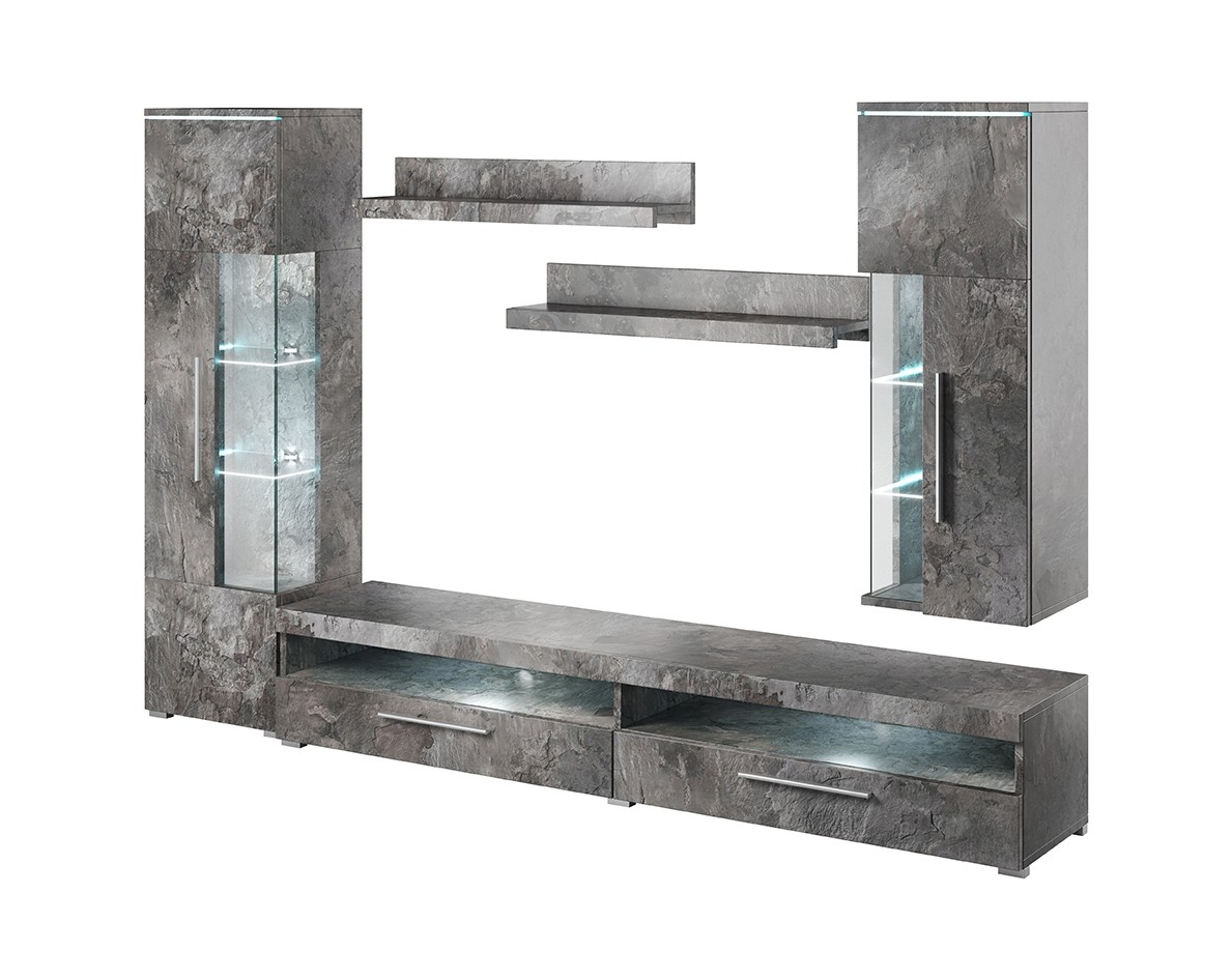 Dnevna soba INDIA vas bo ne bo pustila ravnodušne. Dnevna soba je na voljo v barvi skrilavca, ki daje pridih sodobnega dizajna. Kombinacija stekla in barve skrilavca bosta optično povečali vaš prostor. Privoščite si edinstveni stil in uživajte v udobju sodobnega pohištva in umirjenega sloga.