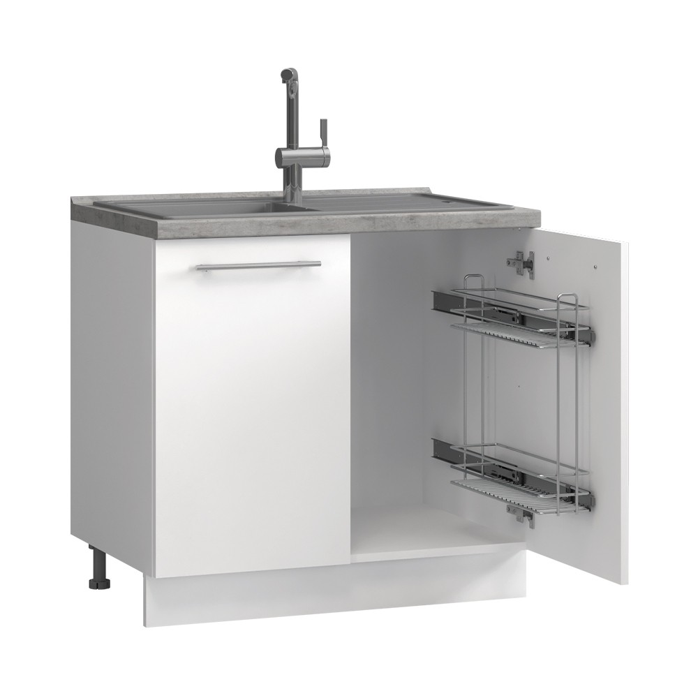 Opremite svojo kuhinjo s priročnim dodatkom, na katerega lahko postavite detergent, viledo, tablete za pomivalni stroj in ostale nujne kuhinjske pripomočke. Držalo je primerno za spodnje kuhinjske elemente z vratci, na katere se montira držalo. V setu prejmete dve košarici globine 15 cm.