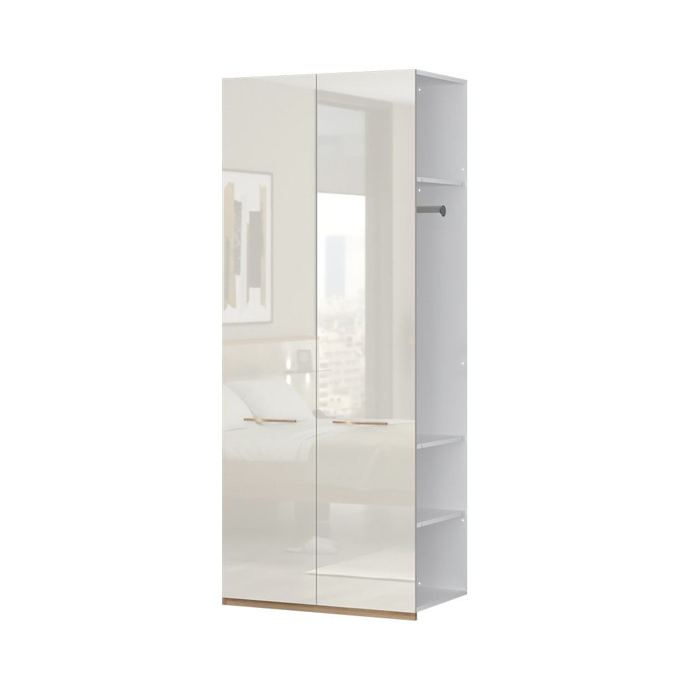 Dodatna dvodelna garderobna omara KALLA GALA je del modularnega sistema, kjer si lahko sestavite svojo sanjsko garderobno omaro glede na svoje želje in potrebe! Omara je namenjena kot dodatek za dvo ali trodelno omaro KALLA GALA in vključuje 3 police in eno palico za obešanje. Vratca imajo funkcijo tihega zapiranja za lažjo vsakodnevno uporabo!